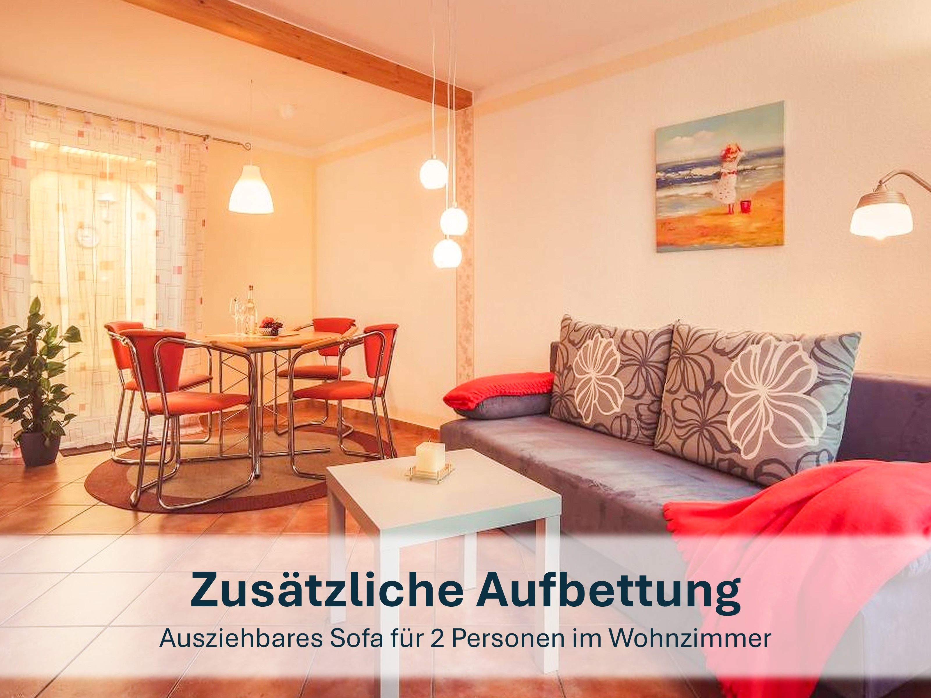 Dank des ebenerdigen Zugangs und der überdachten Terrasse ist die Ferienwohnung ideal für Senioren und Familien mit Kleinkindern. Ein kostenfreier PKW-Stellplatz gehört ebenfalls dazu.