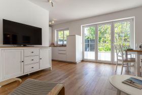 Vom Wohnzimmer aus gelangen Sie direkt auf die Terrasse, wo Sie die frische Luft genießen und die Sonne tanken können. Verbringen Sie gemütliche Abende bei einem Glas Wein oder starten Sie den Tag mit einem entspannten Frühstück im Freien.