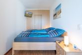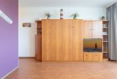 Nach einem erlebnisreichen Tag bietet die 50 m² Ferienwohnung einen erholsamen Rückzugsort für bis zu 2 Personen. Neben einem separaten Schlafzimmer mit Doppelbett gibt es im Wohnzimmer eine weitere Schlafgelegenheit als Schrankbett. Eine offene Küche mit Essplatz im Wohnraum lädt zum gemütlichen Abendessen oder einem langen Spieleabend ein.