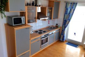 Das Wohnzimmer ist sehr bequem mit Sitz- und Essecke, Sat-TV, Stereoanlage-CD eingerichtet. Eine komplett eingerichtete Küchenzeile ,E-Herd,Toaster, Geschirrspüler, Mikrowelle, Wasserkocher, Kaffemaschine und Bosch-Tassimo Maschine usw. Von den zwei Balkonen mit Sitzmöbeln können Sie einen herrlichen Seeblick auf die Ostsee und das Kap Arkona genießen. Ideal für Familien mit Kindern. Keine Haustiere!