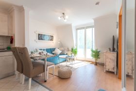 Mitten im Herzen von Bansin bietet Ihnen diese zentral gelegene und exklusive Ferienwohnung im Appartementhaus Blaue Welle den idealen Ausgangspunkt für Ihre Urlaubsabenteuer. Ital. Restaurant, Eisdiele und Steakhouse befinden sich im Gebäude.