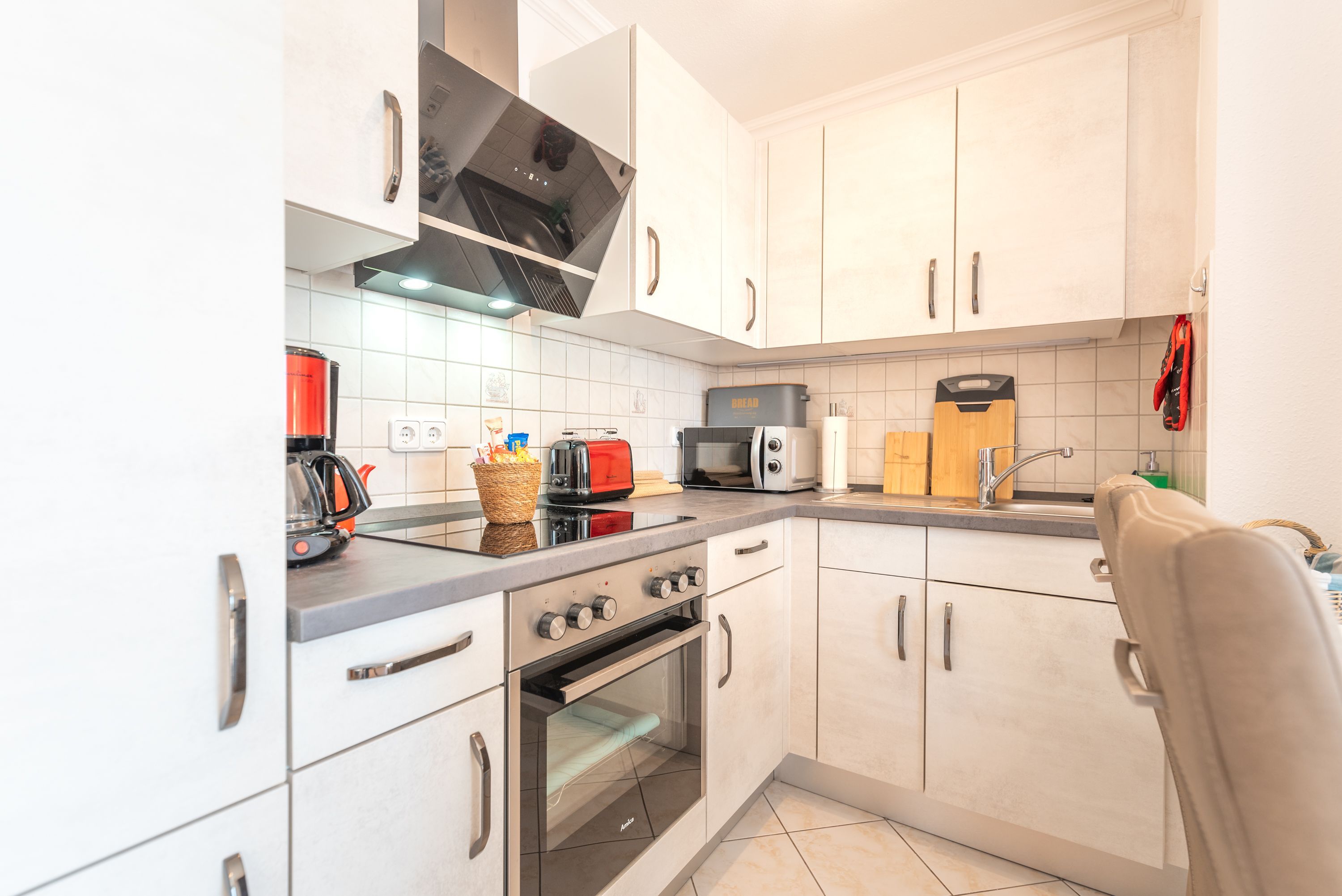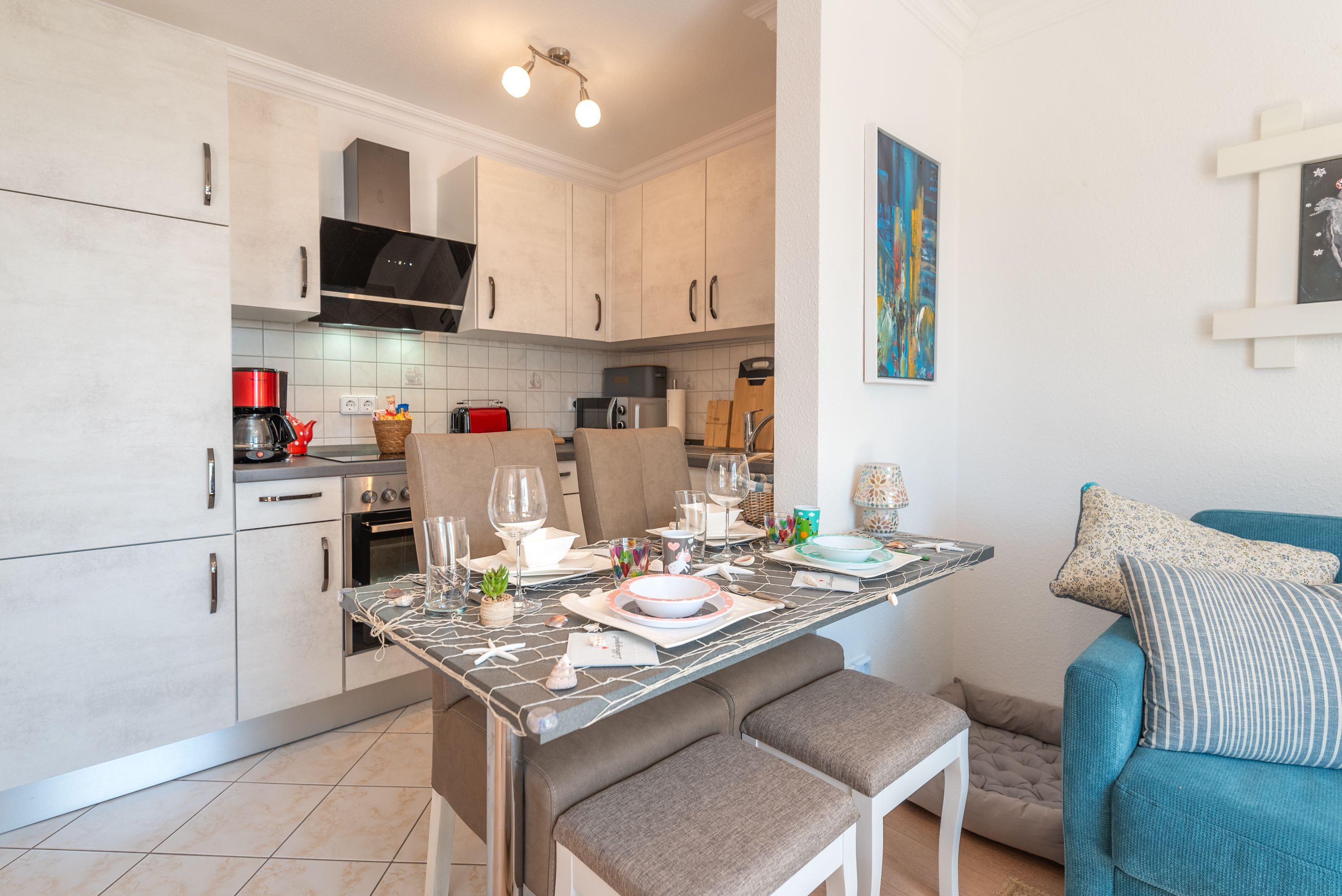 • Wohn- und Küchenbereich: Modern eingerichtet und mit allem ausgestattet, was Sie für einen selbstbestimmten Aufenthalt benötigen, inklusive Designgeschirr und -besteck von WMF, Kindergeschirr, Backutensilien und einem Mixer.