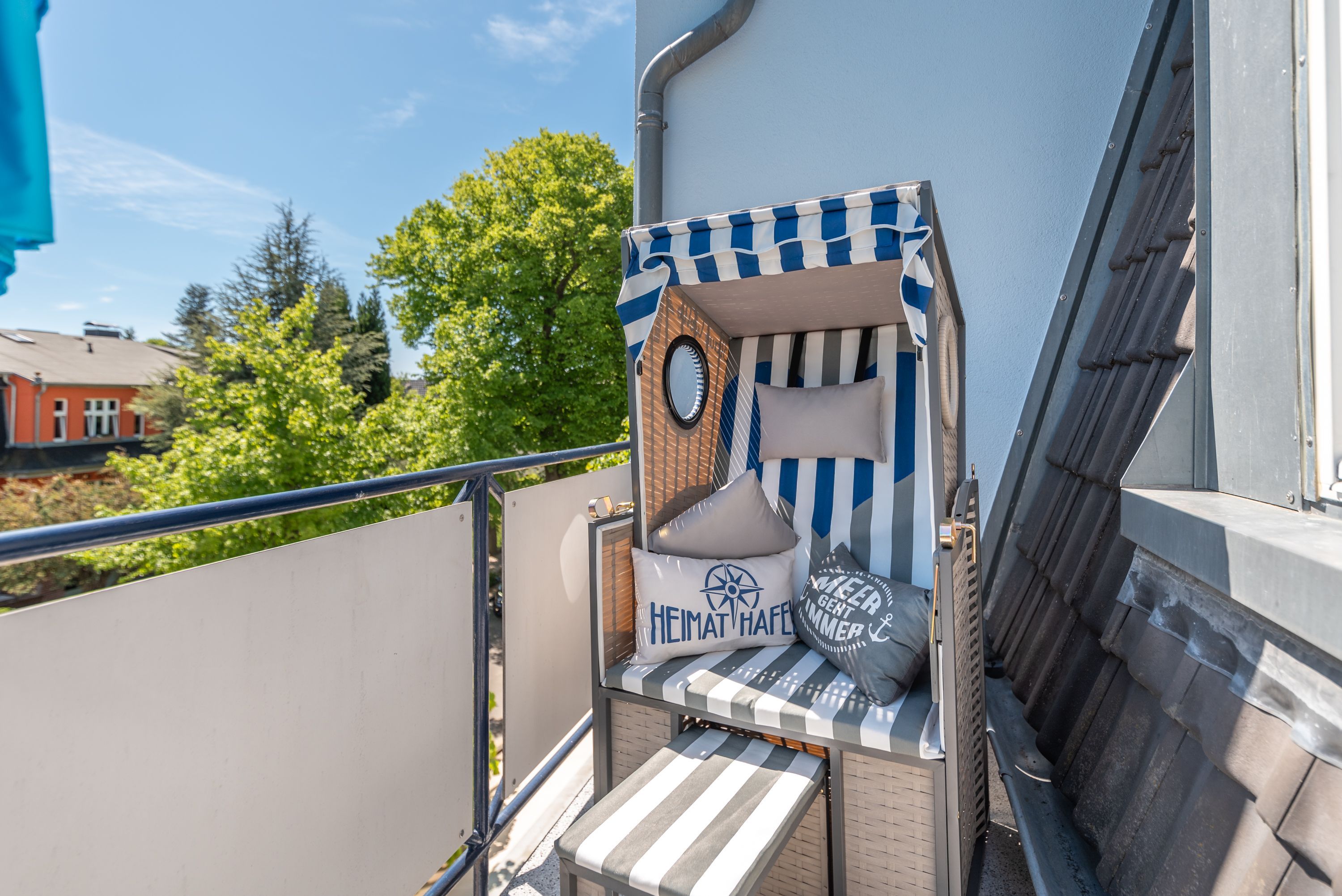 • Balkon: Großzügiger Balkon mit Süd-Ost-Ausrichtung, ausgestattet mit einem Einsitzer-Strandkorb, komfortablen Balkonmöbeln und Sonnenschutz. Rauchen ist auf dem Balkon erlaubt.