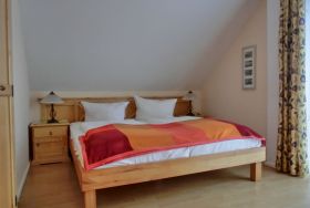 Im Schlafbereich befindet sich ein großes Doppelbett. Für eine weitere Person steht eine Klappliege (bzw. Gästebett) zur Verfügung, welches vor dem Doppelbett aufgestellt werden kann.