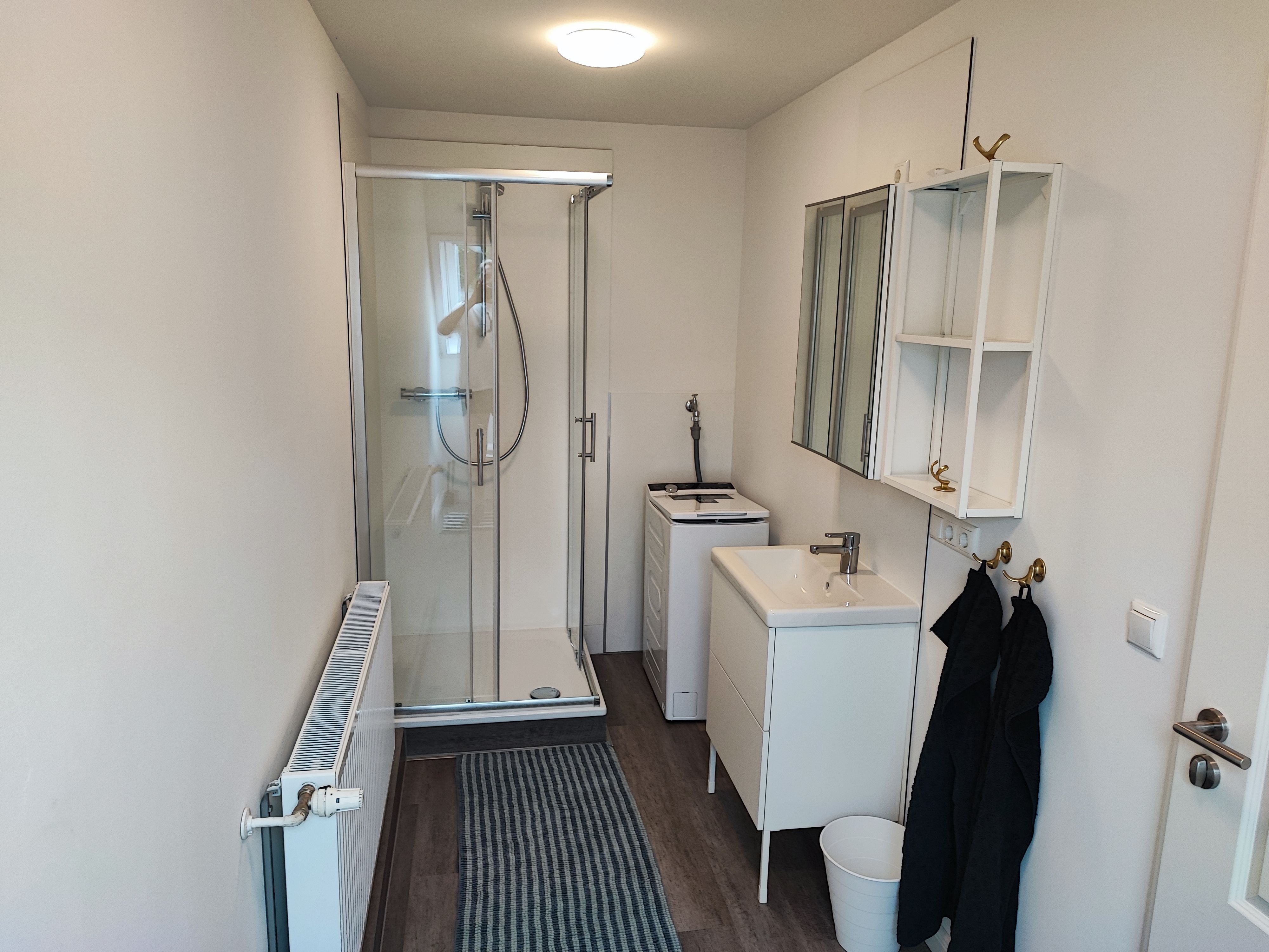 • Duschbad mit kleiner Waschmaschine; Handtücher zu buchbar
