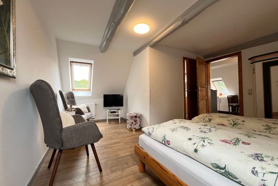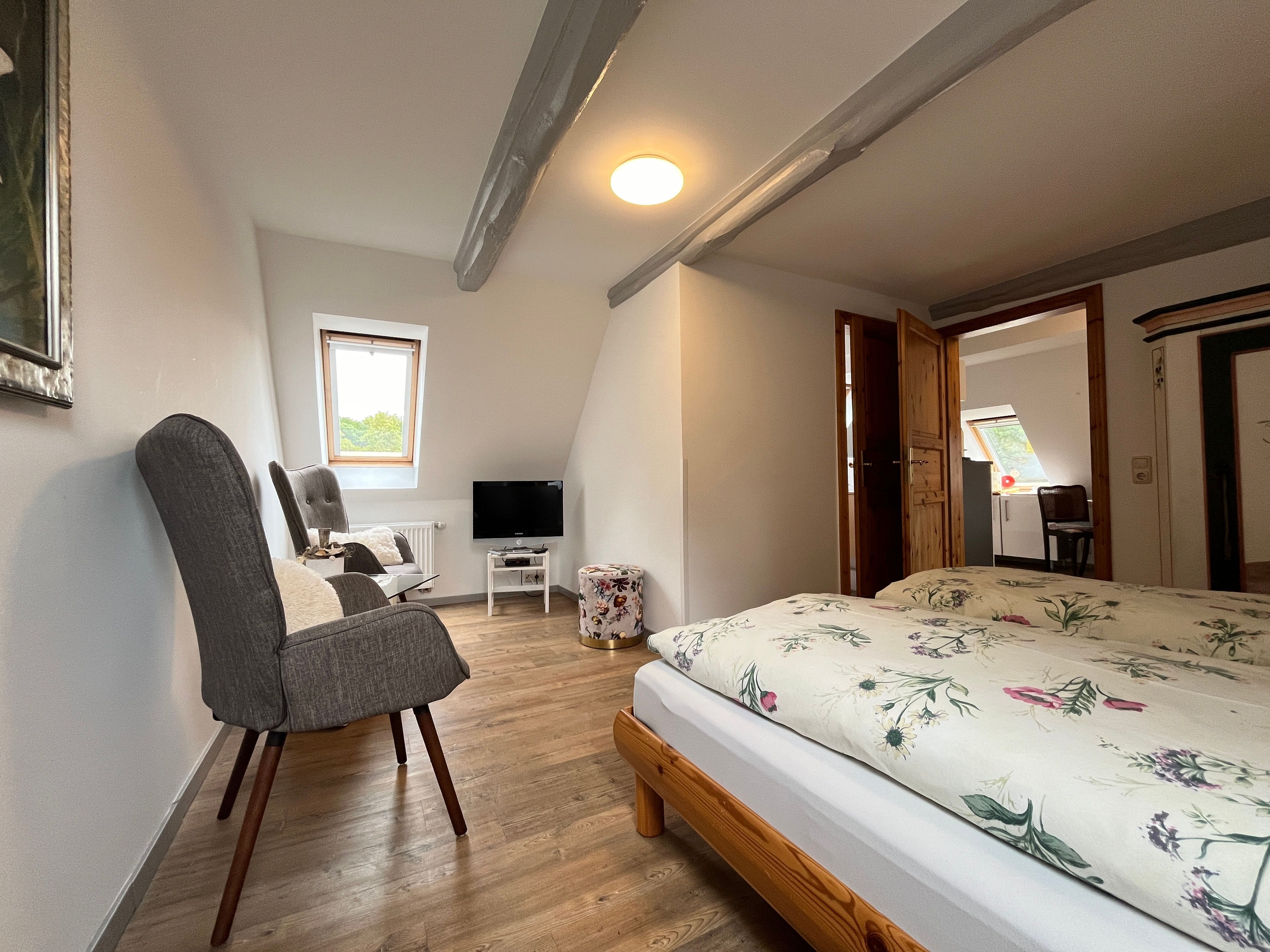 - Wohn-/Schlafzimmer mit Doppelbett 1,80 x 2,00m und Sat-TV