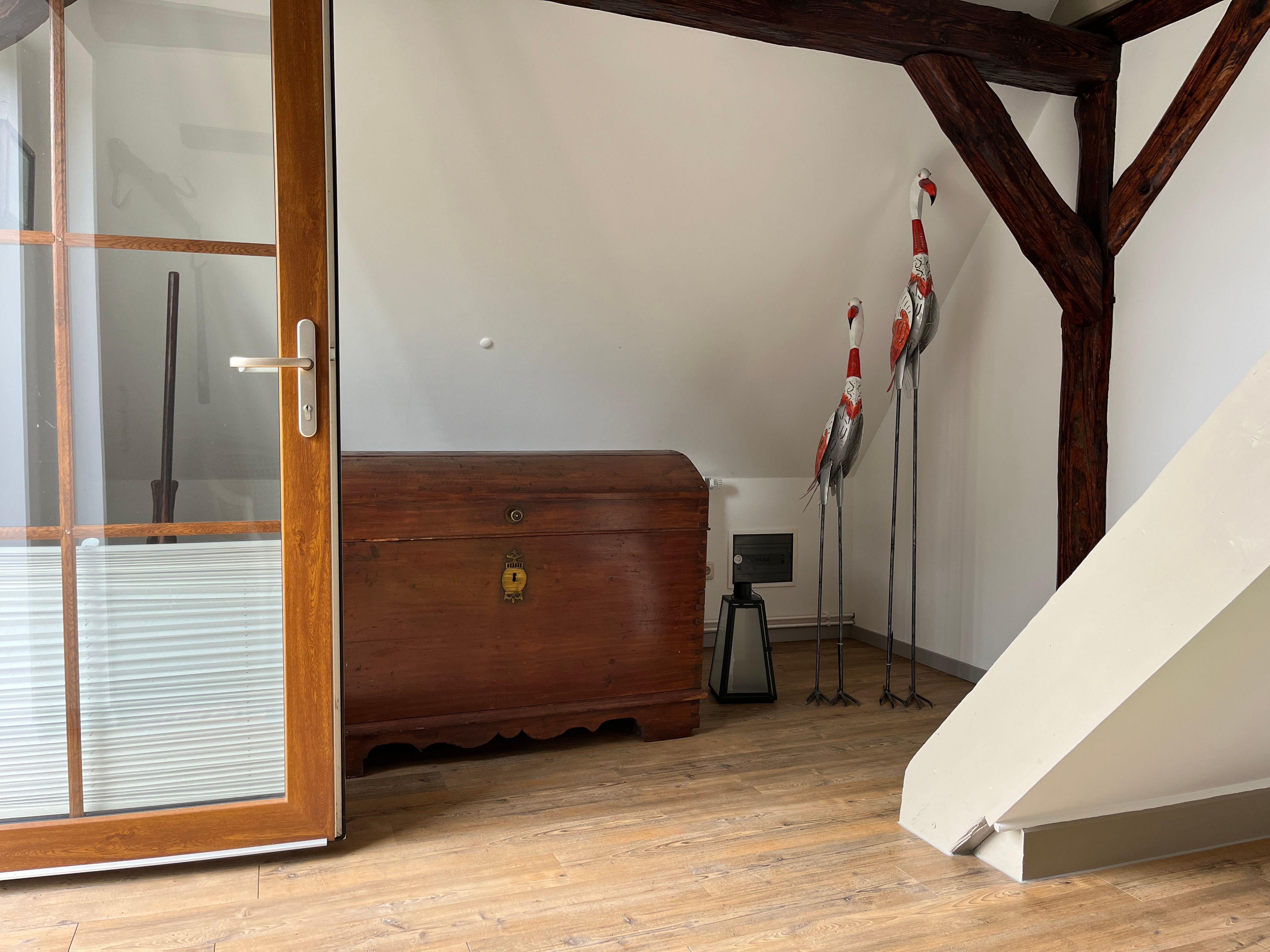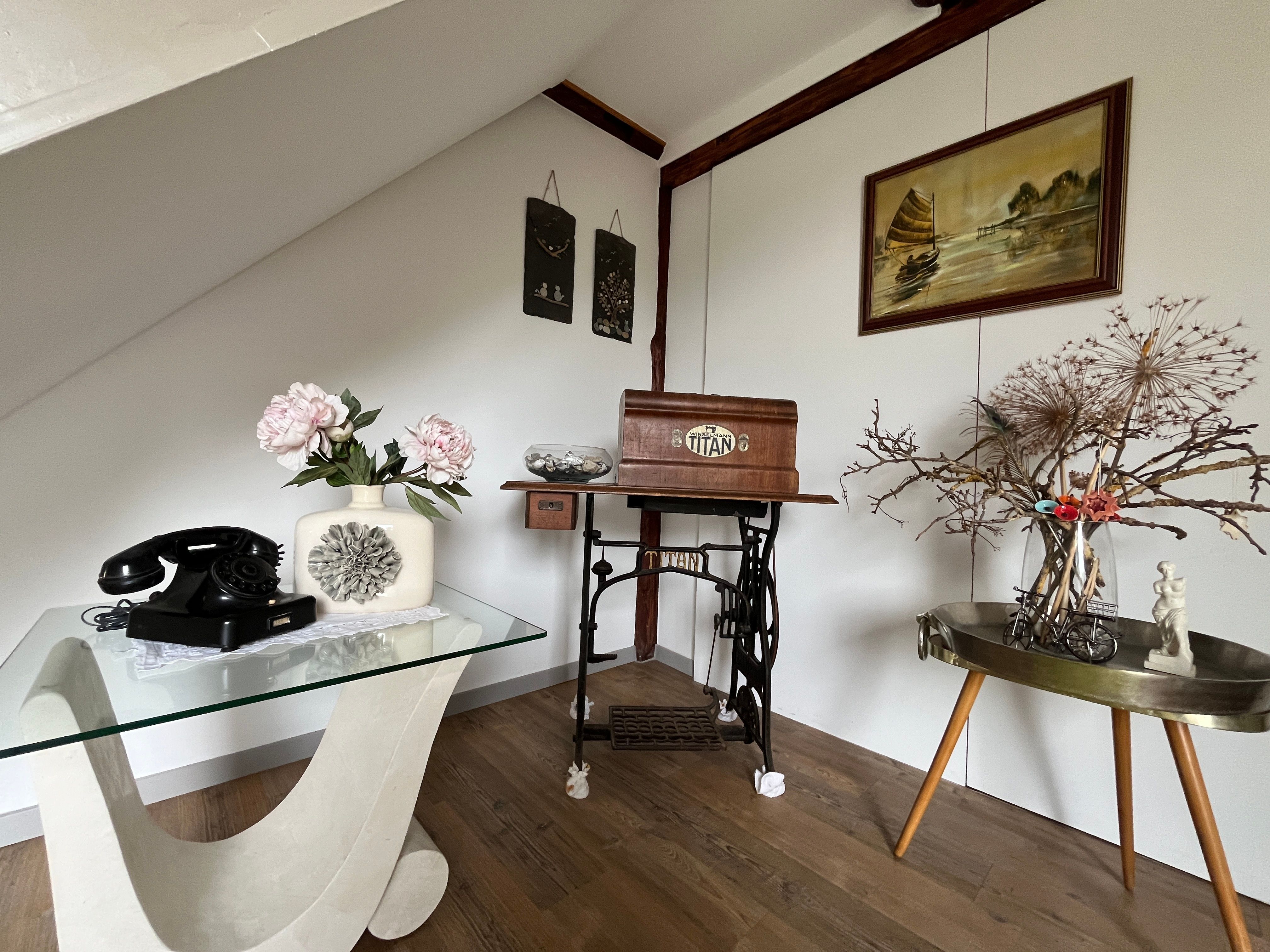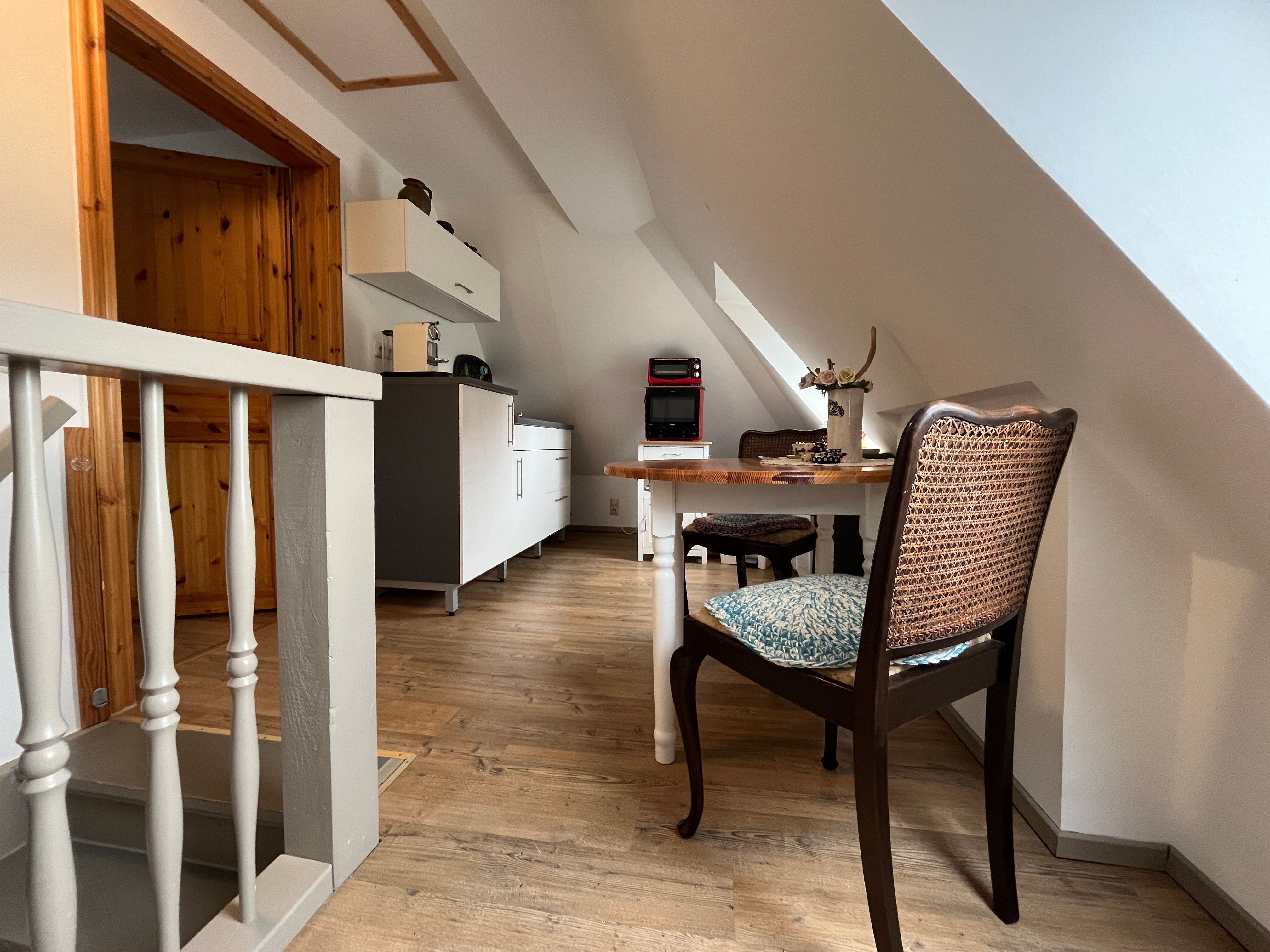 Im Obergeschoss des historischen Inspektoren-Hauses des Gutes Westenbrügge erwartet Sie unsere kleine Ferienwohnung für 2 Personen. Die Maisonettewohnung ist 40m² groß und nicht behindertengerecht (Treppen). Über eine Aussentreppe erreichen Sie unsere 26m² große Gemeinschaftsterrasse mit Zugang zu den beiden Ferienwohnungen.