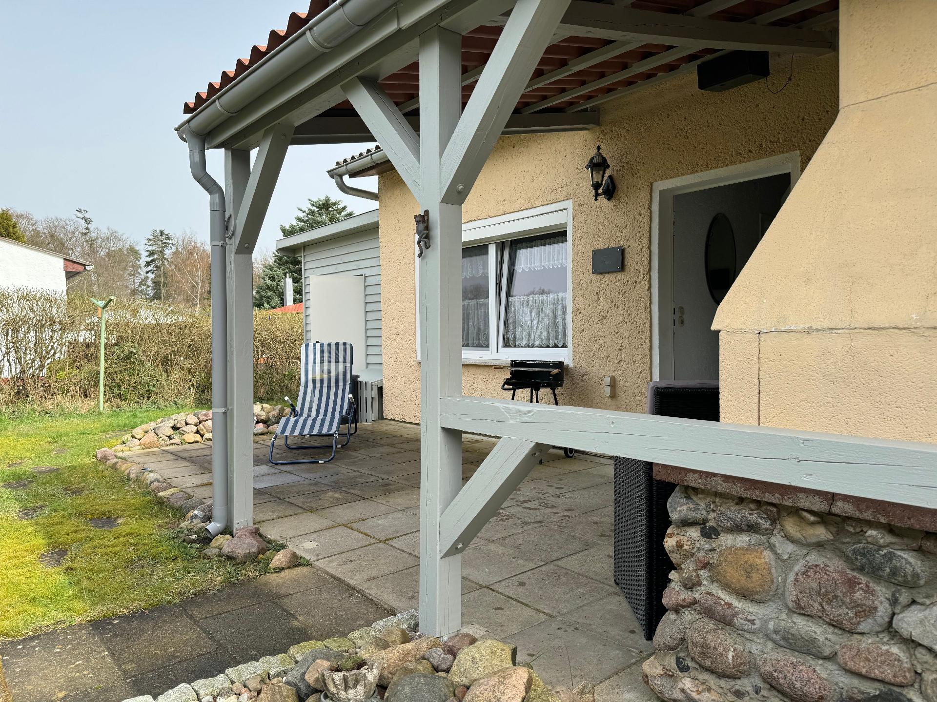 Die Terrasse ist mit Gartenmöbeln, Sonnensegel und einem Grill ausgestattet. Das Grundstück ist eingefriedet und somit auch für Kinder und Hunde bestens geeignet.