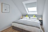 Das Schlafzimmer beinhaltet ein modernes Boxspring-Doppelbett (1,80 x 2,00 m) und Kleiderschrank.