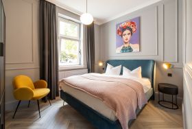 Überall sieht und spürt man den Charme der alten Bäderstil-Villa, gepaart mit dem guten Geschmack Ihrer freundlichen Gastgeber. Farben und Formen des sorgsam ausgesuchten Mobiliars harmonieren perfekt miteinander. Das Schlafzimmer verfügt über ein hochwertiges Doppelbett, welches Ihnen einen erholsamen Schlaf bieten wird. Auch das moderne Duschbad und die hochwertig ausgestattete Küche lassen keine Wünsche offen.