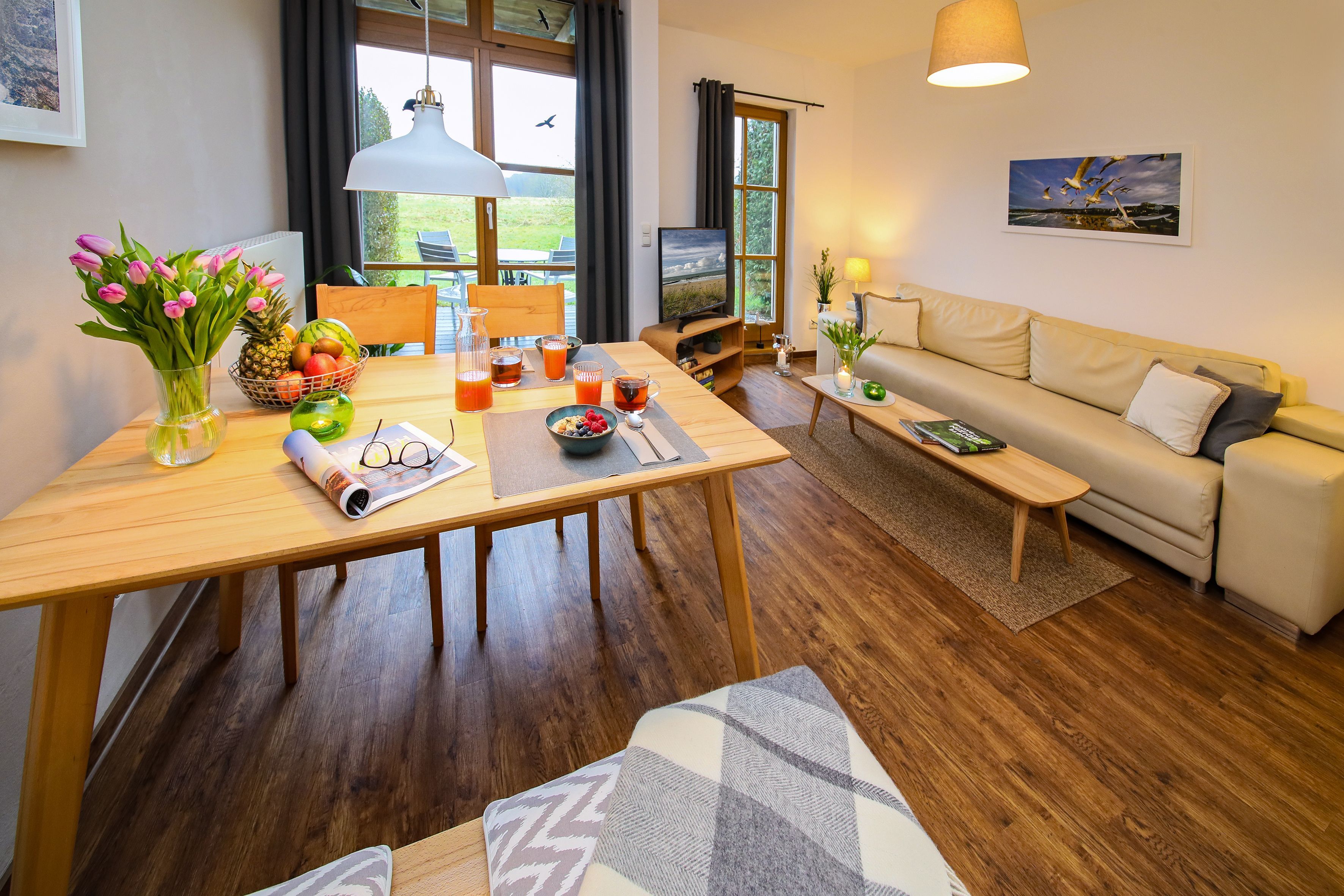 Unsere Ferienwohnung befindet sich in der Ostseegemeinde Wittenbeck, zwischen den traditionsreichen Ostseebädern Heiligendamm und Kühlungsborn. Genießen Sie die Schönheit der Landschaft und das Klima der Ostsee in ruhiger Lage mit wunderschönem Blick ins Landschaftsschutzgebiet. Die Ferienwohnung hat eine Größe von ca. 63m² und ist für bis zu 4 Personen geeignet. Durch die leichte Hanglage verfügt die Wohnung über eine Terrasse mit kleinem Garten vor dem Wohnzimmer und einen Balkon am Schlafzimmer. Ein PKW Stellplatz steht Ihnen kostenfrei direkt vor dem Gebäude zur Verfügung. Ebenfalls bieten wir Ihnen einen kostenfreien WLAN Anschluss. Für unsere kleinen Gäste halten wir einen Kinderhochstuhl und ein Reisebabybettchen bereit. Für Haustiere berechnen wir 10,00 pro Nacht. Bitte beachten Sie, dass auf dem Gelände um die Ferienwohnung Hunde an der Leine zu führen sind! Wir freuen uns sehr auf Ihre Anreise in unserer Ferienwohnung Baltic Green Haven. Damit Ihr Aufenthalt von Anfang an perfekt wird, möchten wir Ihnen optional unseren Bettwäscheservice (bezogene Betten bei Anreise) zum Preis von einmalig 10€ pro Person und unseren Handtuchservice zum Preis von einmalig 5€ pro Person anbieten. Bei Interesse können Sie uns gerne im Voraus Bescheid geben, damit wir alles für Sie vorbereiten können. Wir wünschen Ihnen eine angenehme Reise und freuen uns, Sie bald bei uns begrüßen zu dürfen.