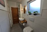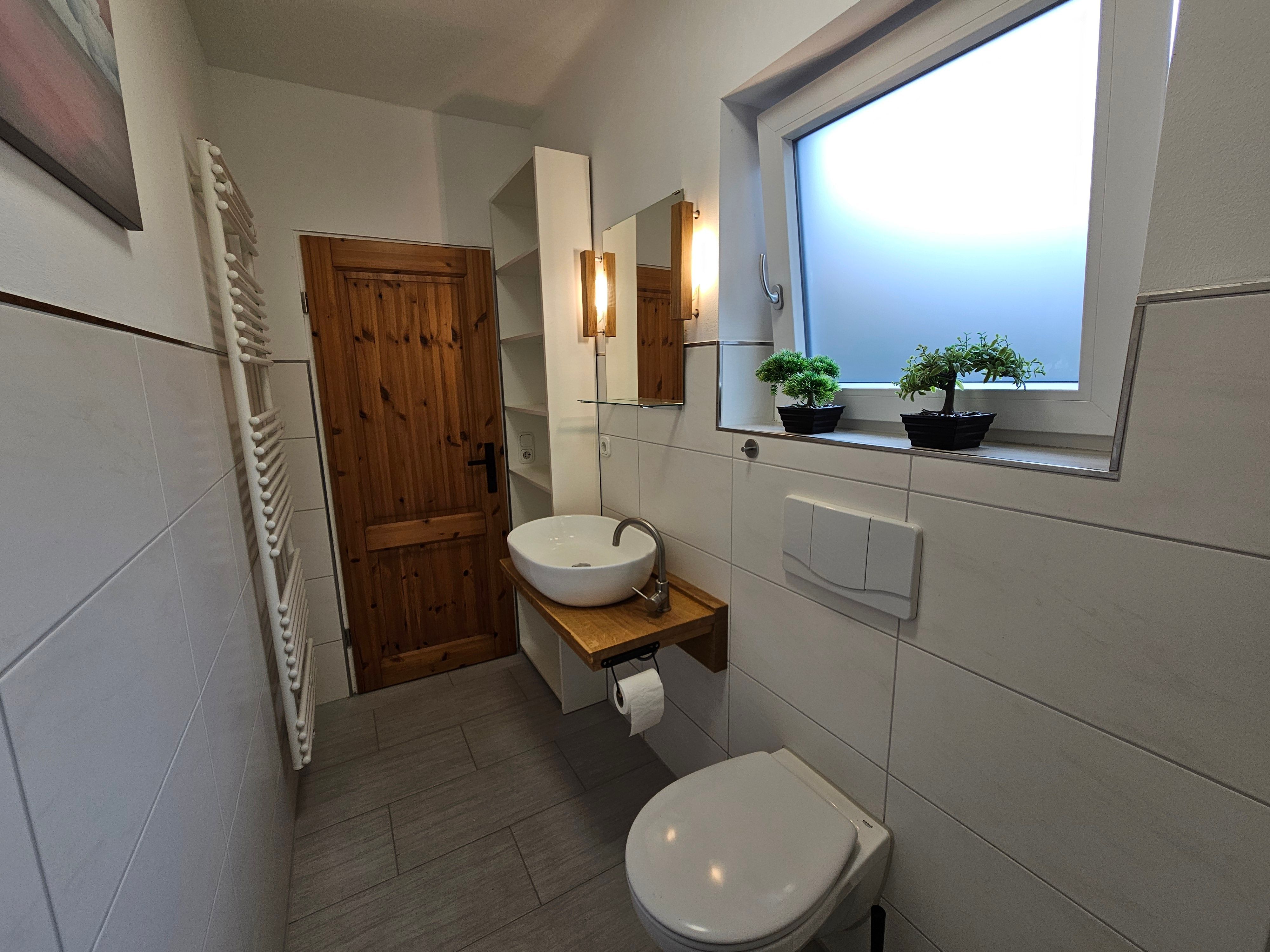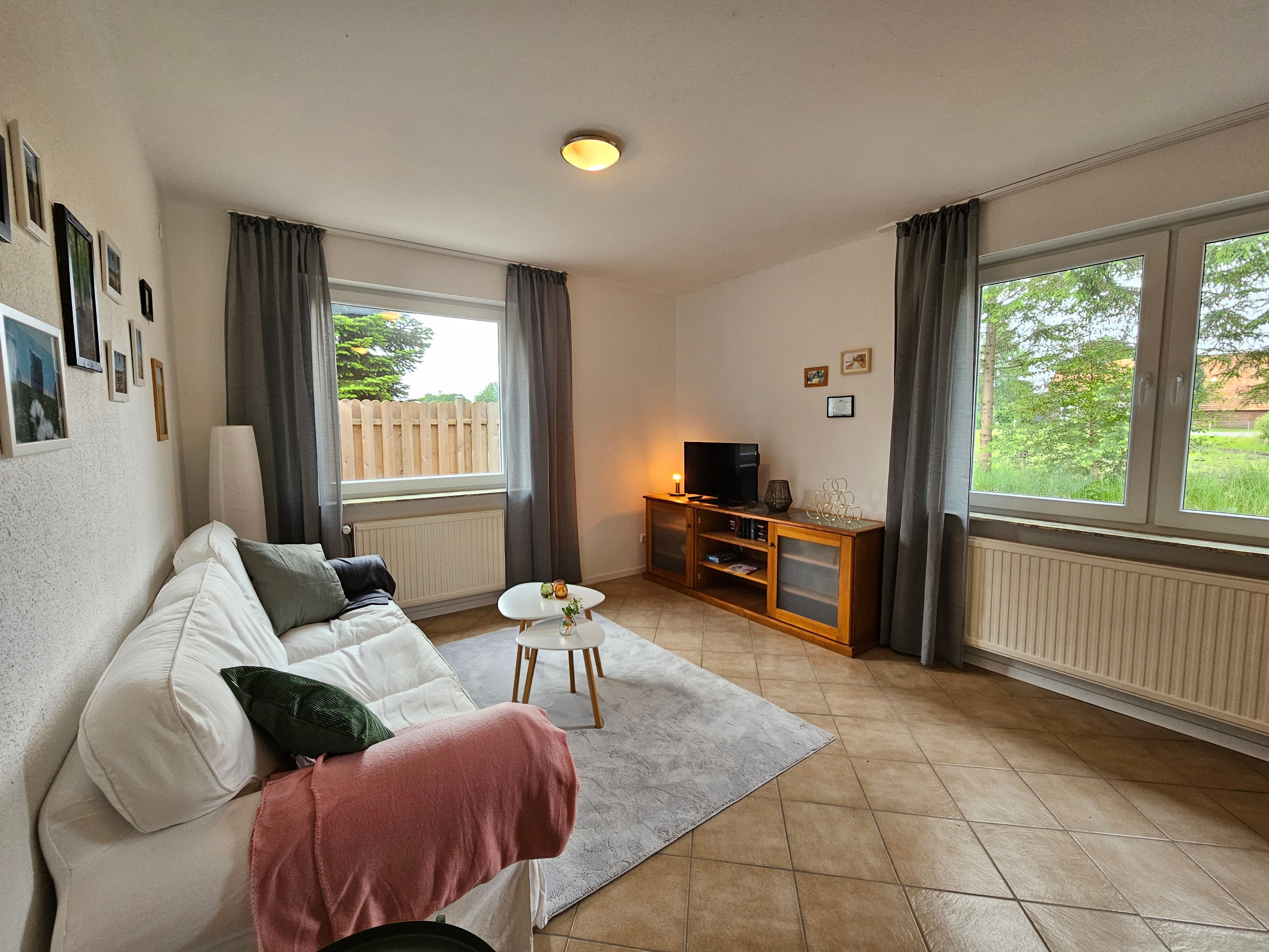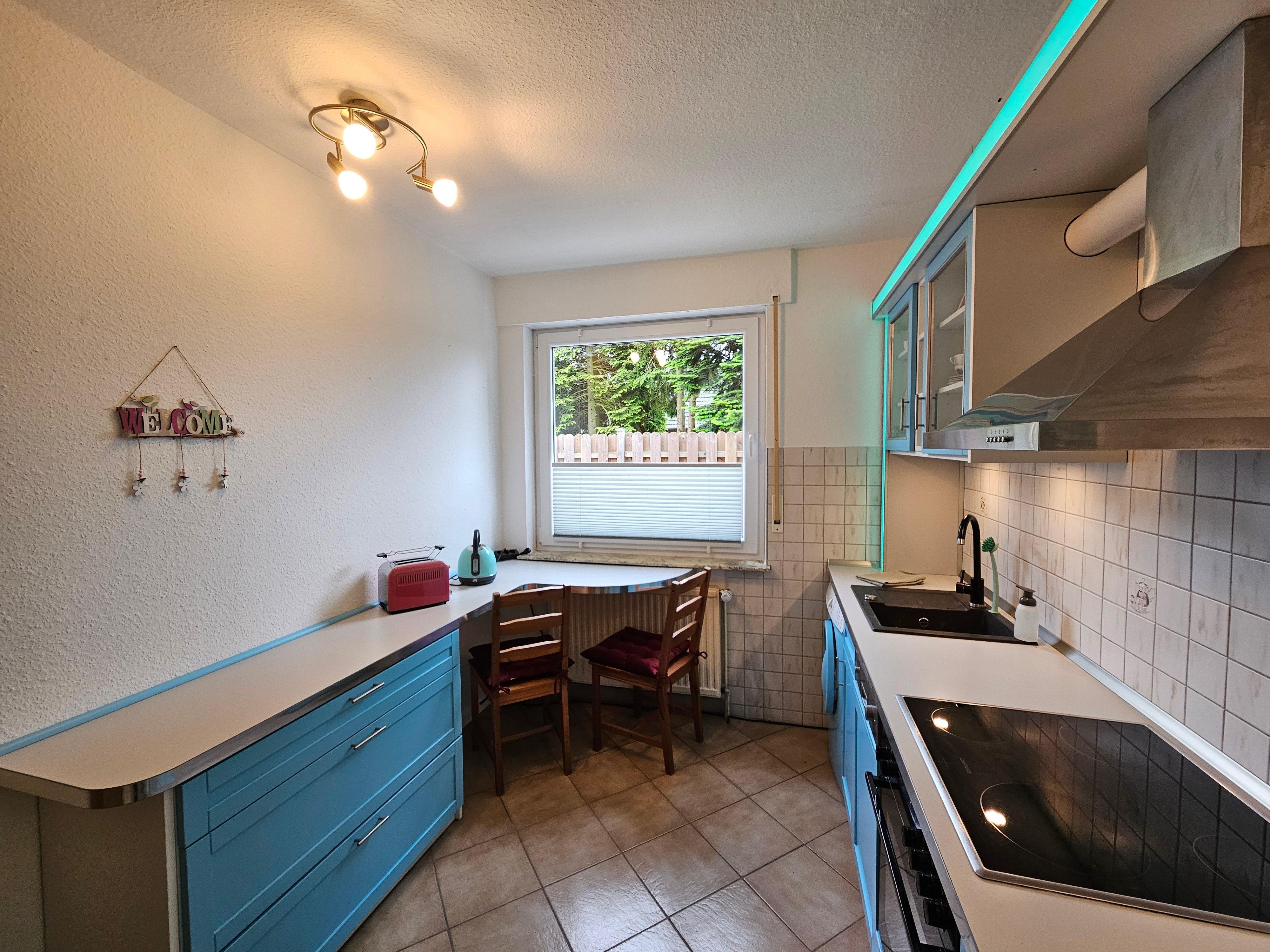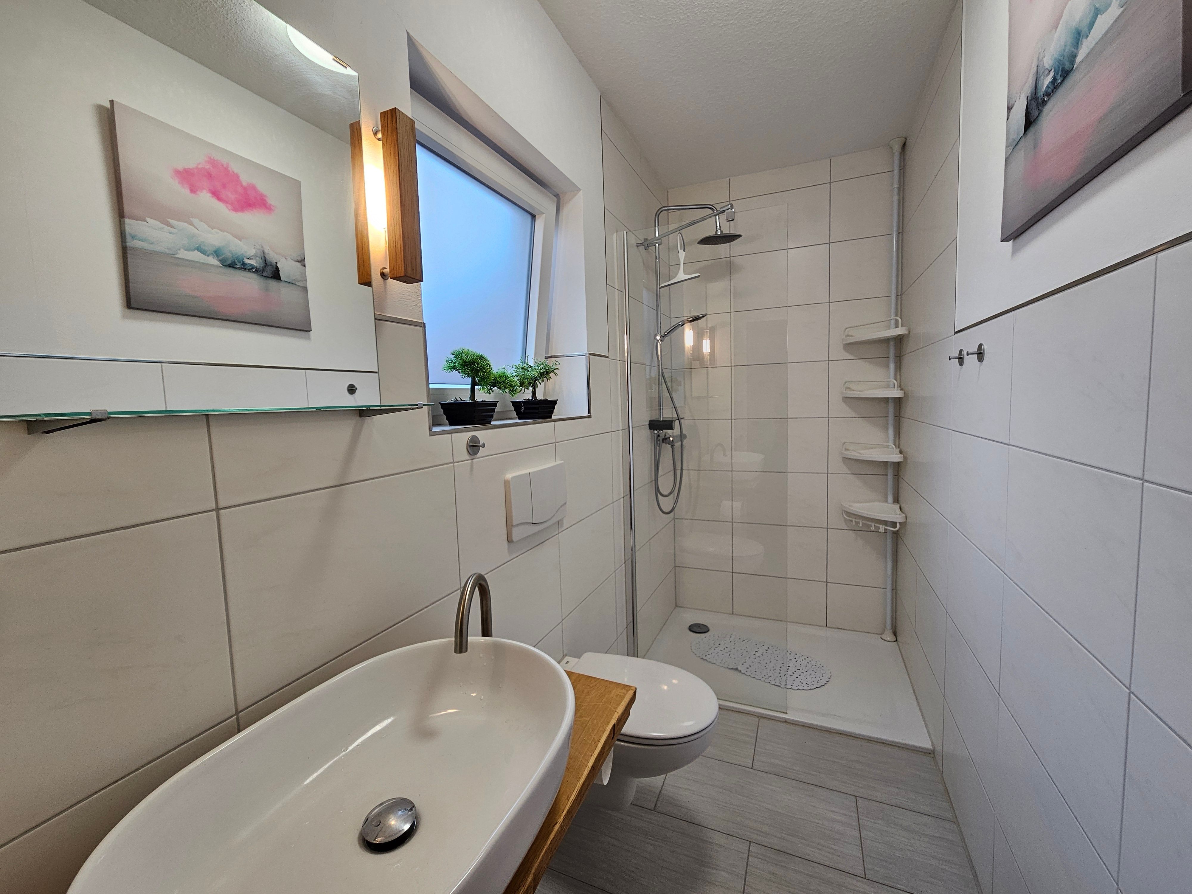 Schöne, Doppelhaus-Ferienwohnung auf zwei Etagen mit separaten Eingang und Stellplatz. Die 57qm Ferienwohnung bietet für zwei Personen genügend Platz für einen entspannten Urlaub. Im Erdgeschoss erwartet Sie eine vollausgestattete Küche mit Geschirrspühler, ein Badezimmer mit Dusche und WC sowie ein Wohnzimmer mit einer gemütlichen Couch und TV sowie eine kleine Essecke. Im Obergeschoss befindet sich das offene Schlafzimmer mit einem Doppelbett (1,80x2,00m) mit angrenzendem Balkon. Bettwäsche, Handtücher sowie WLAN sind inklusive. In der Wohnung sind Haustiere herzlich willkommen (Aufpreis).