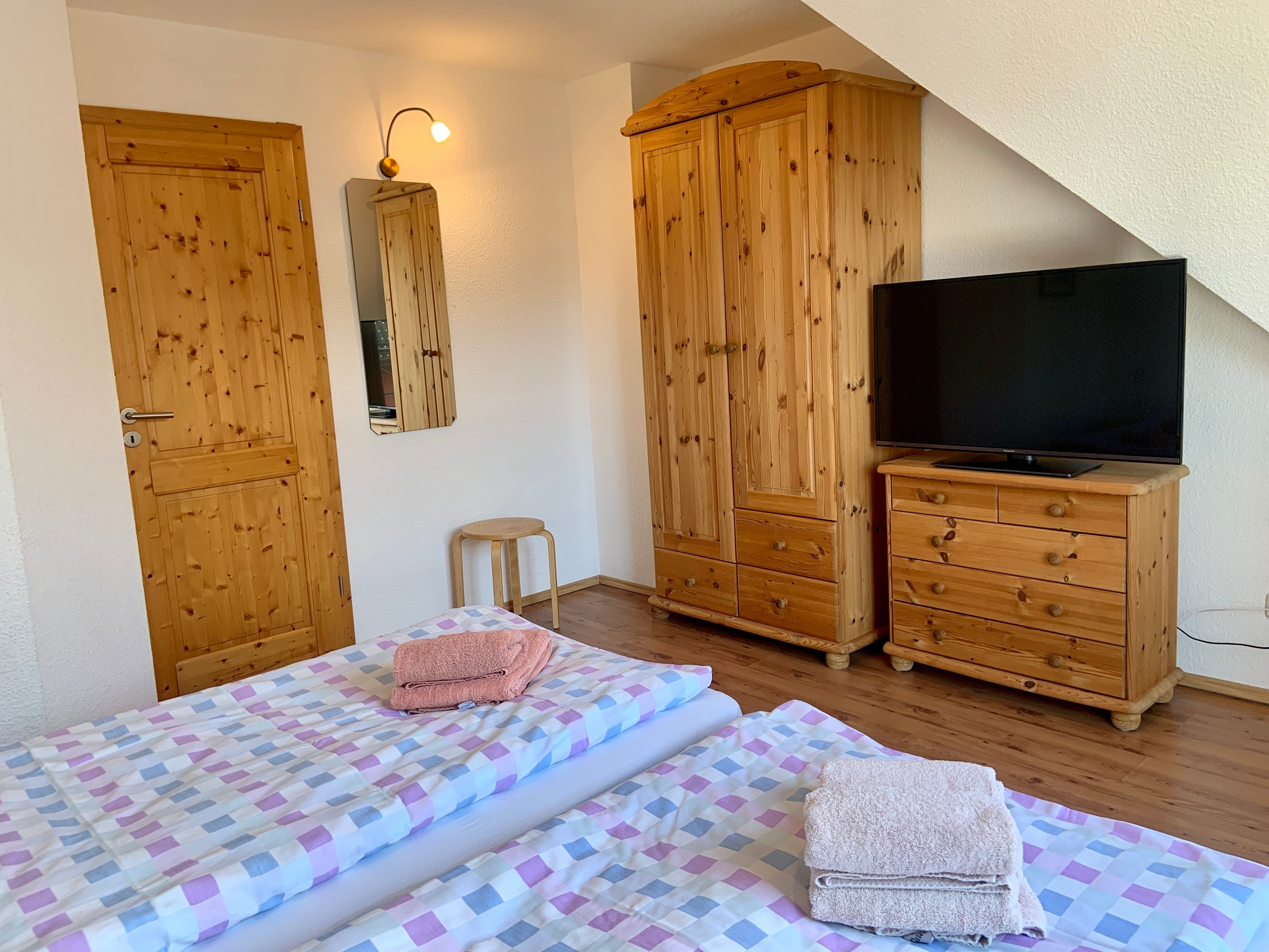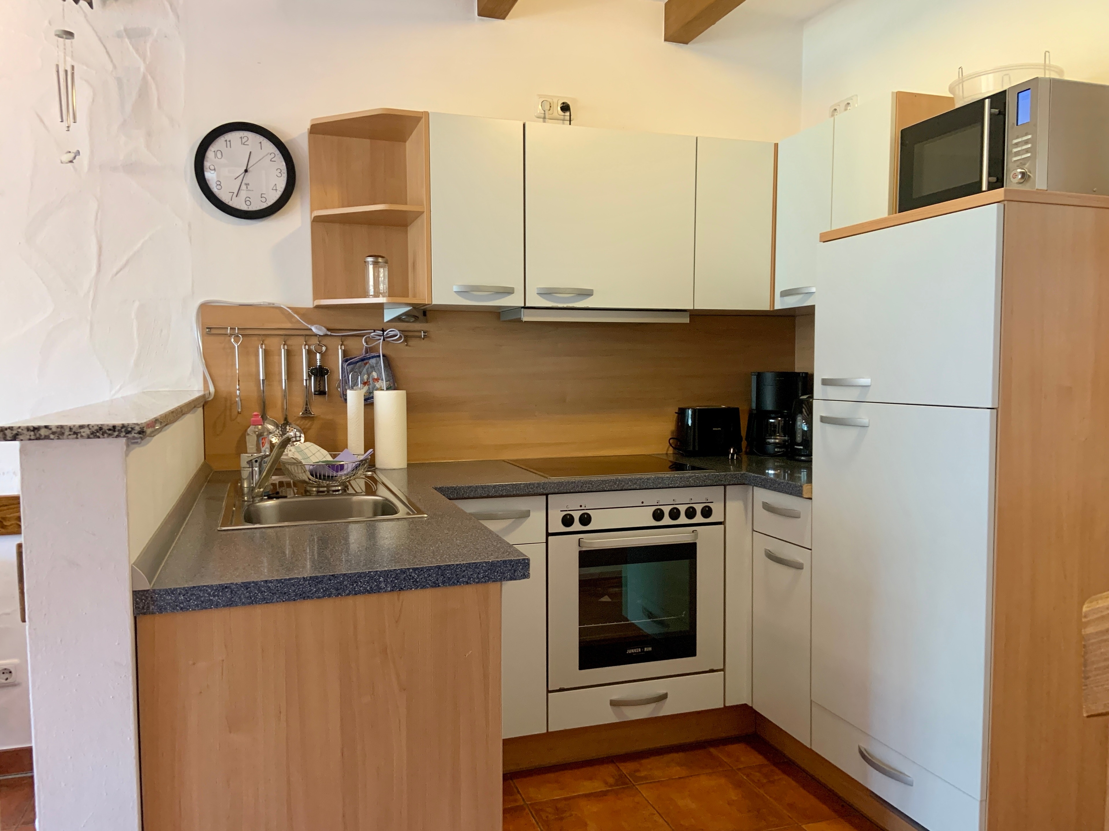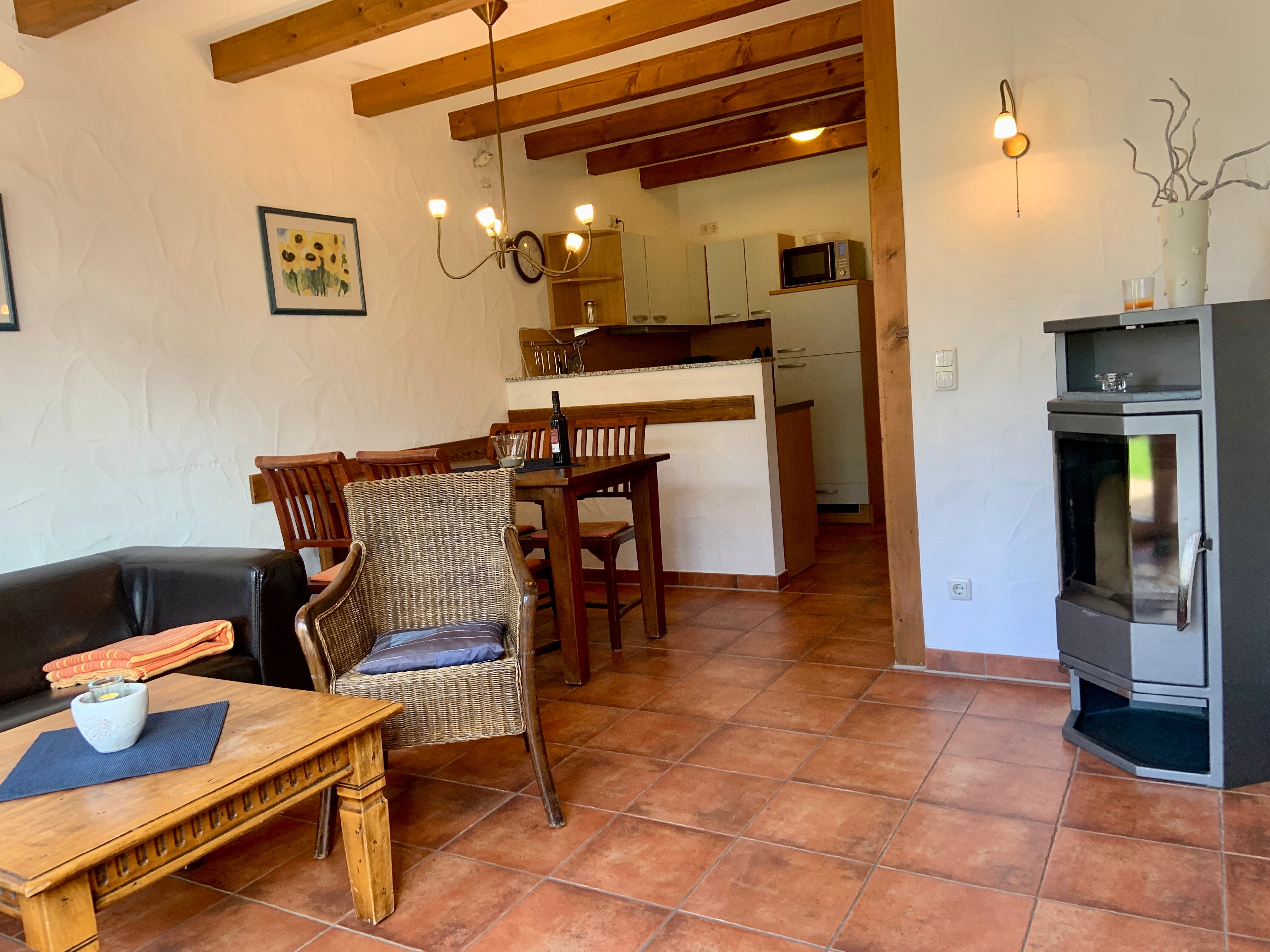Das Wohnzimmer ist rustikal eingerichtet und die Küche ist komplett ausgestattet, sodass es an nichts fehlen wird. Die zwei Schlafzimmer im Obergeschoss verfügen jeweils über ein Doppelbett. Die zwei Bäder sind jeweils mit einer Dusche ausgestattet. Im Erdgeschoss werden die Räume dur eine Fußbodenheizung beheizt.