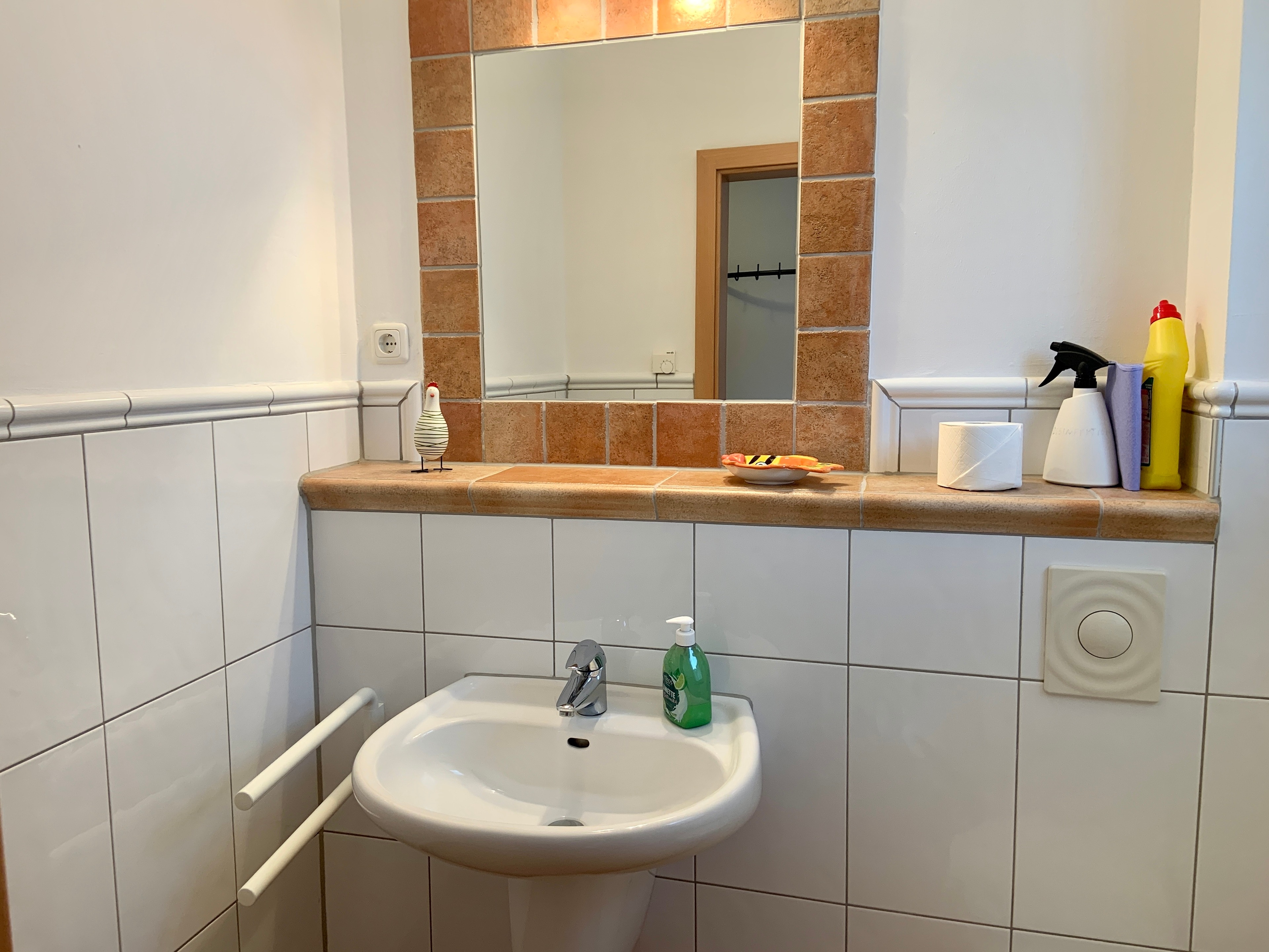 Zugang zur Terrasse mit Gartenmöbeln. 2 Schlafzimmer mit Doppelbetten und ein Schlafzimmer mit Einzelbetten. Es sind zwei Tageslichtbäder mit Dusche und WC und ein Gäste-WC vorhanden. Sauna (abschließbar), Waschmaschine und Trockner sind gegen Gebühr in separaten Räumen mitbenutzbar. Kostenloses WLAN.