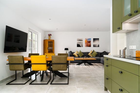 Unsere neue Wohnung Mühlenblick 3 befindet sich im Obergeschoss und bietet auf etwa 90qm einen gemütlichen und hellen Wohn-Ess-Bereich mit voll ausgestatteter Küche, Sofalandschaft und großem Esstisch sowie zwei geräumige Schlafzimmer mit bequemen Boxspringbetten und ausreichend Ablagefläche. Neben dem Tageslichtbad mit ebenerdiger Dusche finden Sie außerdem ein Gäste-WC, was die Wohnung zusätzlich sehr komfortabel macht. Die gemeinschaftliche Bibliothek im Hausflur bietet neben vielen Büchern auch einige Spiele für gesellige Abende. Durch die zentrale Lage im Luftkurort Hage erreichen Sie die bekannte Mühle, die Burg Berum sowie das Schloss Nordeck nach nur wenigen hundert Meter - vom Balkon aus haben Sie einen tollen Blick auf die bekannte Mühle. Selbstverständlich stehen Ihnen ein eigener Parkplatz am Haus sowie ein Abstellraum für Fahrräder zur Verfügung.
