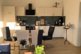Das Wohn- und Esszimmer ist mit einer modernen Küchenzeile ausgestattet und verfügt über qualifizierte Küchengeräte.