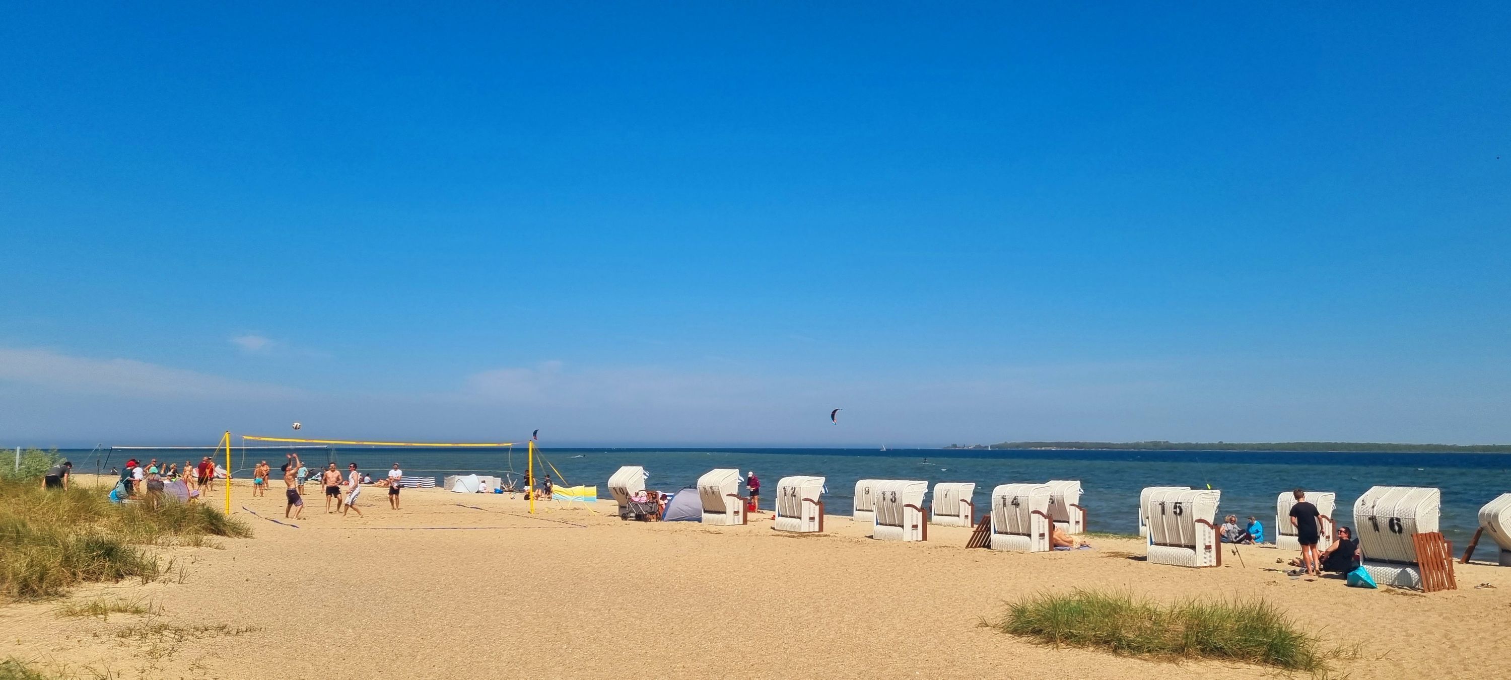 Im Schlafzimmer befindet sich ein komfortables Doppelbett. Auch von hier haben Sie einen wundervollen Blick über den Golfplatz bis hin zur Ostsee (Wismarbucht).