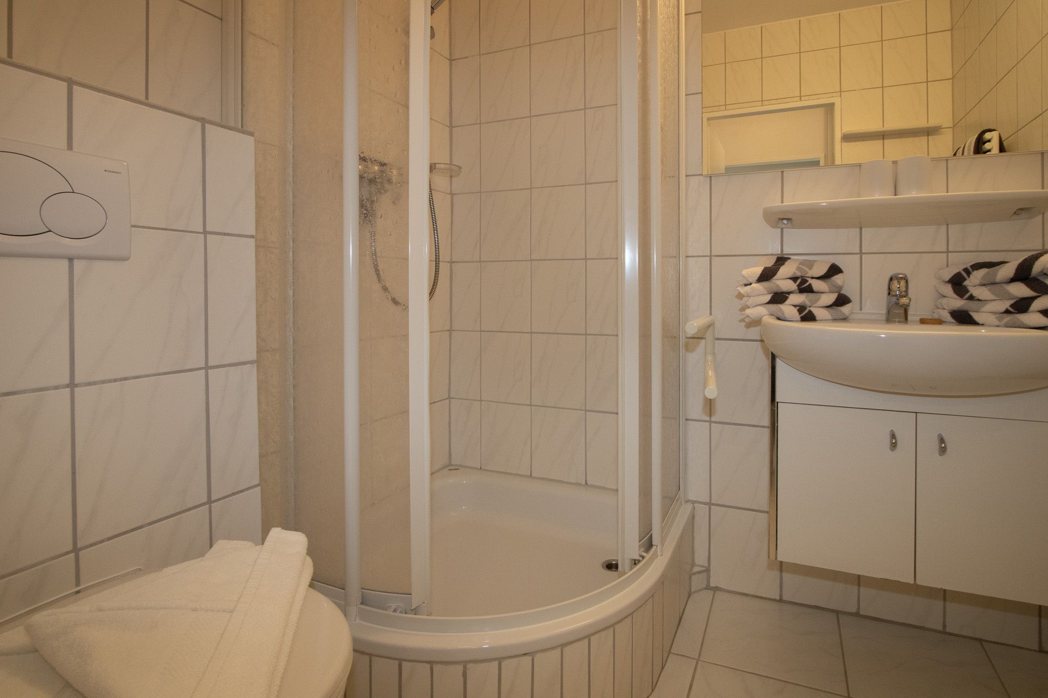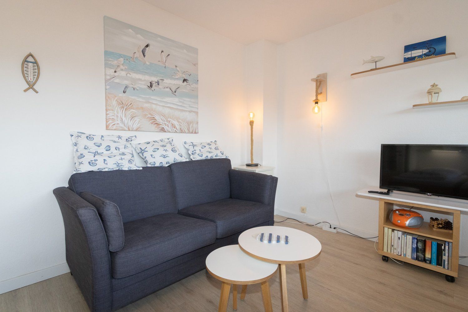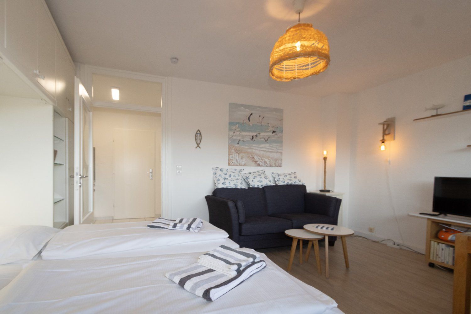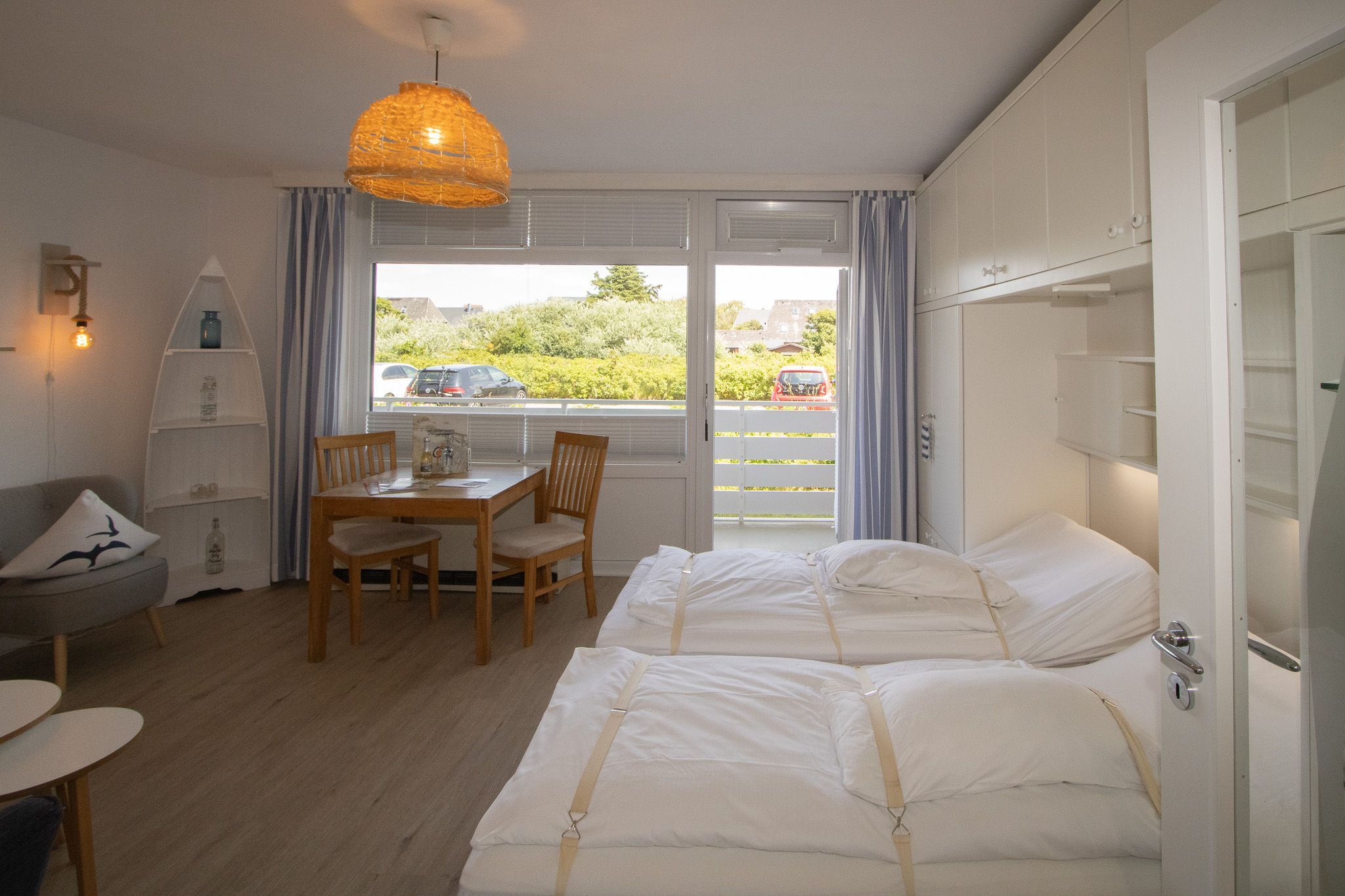 Bei der Einrichtung der Wohnung wurde auf Komfort und Wohnqualität sehr viel Wert gelegt. Das komfortable Schrankbett kann tagsüber ganz schnell verschwinden und der Wohnraum mit Esstisch wirkt wunderbar groß. Mit großem Flachbildschirm und WLAN, lässt diese Wohnung keine Urlaubswünsche offen.