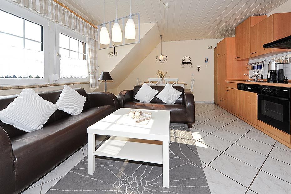 Die beiden sehr gemütlichen Ferienwohnungen für Nichtraucher im Obergeschoss des „Hauses Schäfer“ sind liebevoll, modern und geschmackvoll eingerichtet und hervorragend ausgestattet. Sie sind ungefähr 55 und 50 Quadratmeter groß und jeweils für vier Personen nebst zusätzlichem Kleinkind geeignet. Die Wohnung Steuerbord verfügt über einen Balkon.