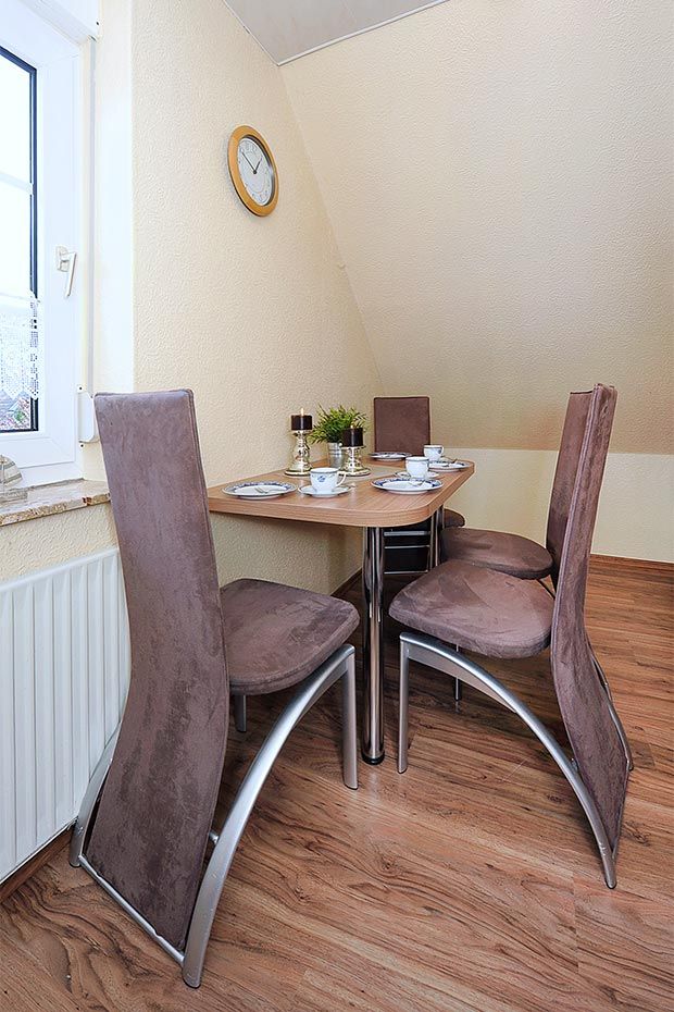 Die beiden sehr gemütlichen Ferienwohnungen für Nichtraucher im Obergeschoss des „Hauses Schäfer“ sind liebevoll, modern und geschmackvoll eingerichtet und hervorragend ausgestattet. Sie sind ungefähr 55 und 50 Quadratmeter groß und jeweils für vier Personen nebst zusätzlichem Kleinkind geeignet. Die Wohnung Steuerbord verfügt über einen Balkon.