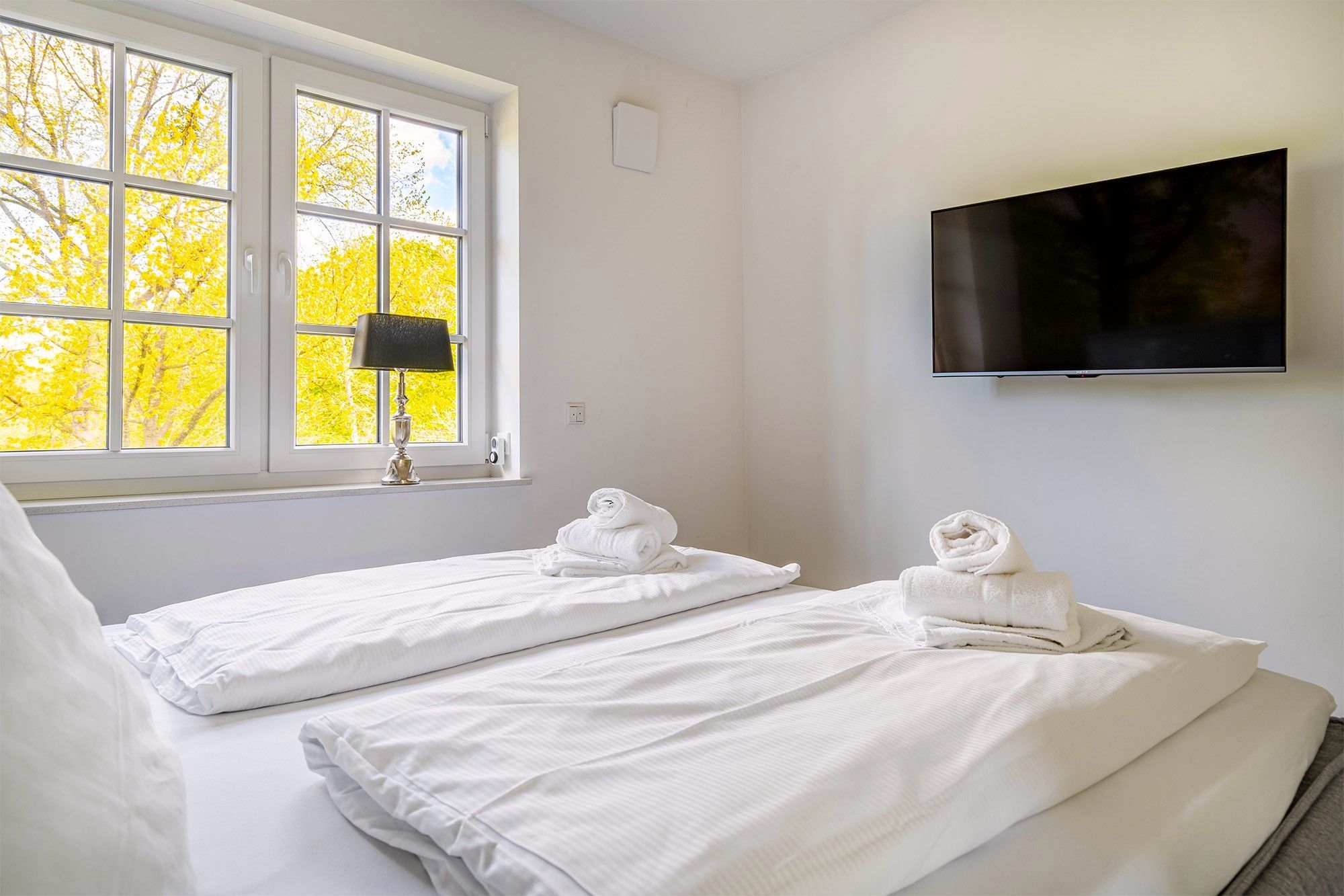 * Gerne bieten wir Ihnen unser Wäschepaket für Ihren Aufenthalt an, welches bezogene Betten, sowie Handtücher (Duschtuch, zwei Handtücher, Duschvorleger und ein Geschirrtuch) umfasst und Euro 19,50 p.P. kostet. Sie können dieses in der Buchungsstrecke unter dem Punkt Ihr Mietpreis hinzu buchen. *