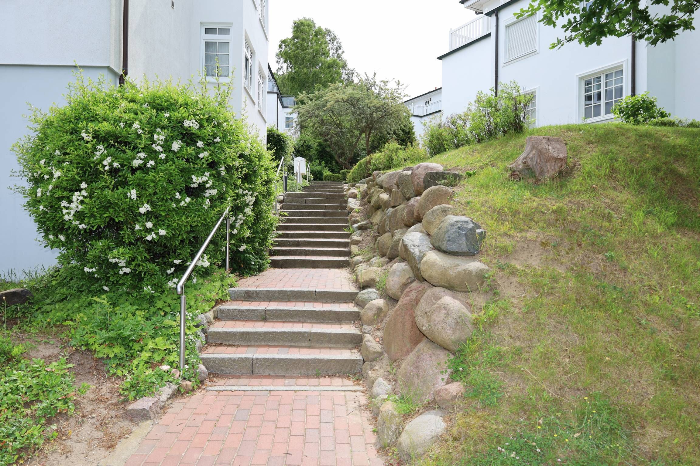 Ein Stellplatz steht Ihnen direkt am Objekt in der Tiefgarage (Duplexparker mit einer maximalen Zufahrtshöhe von 1,60 m) zur Verfügung. In unmittelbarer Nähe finden sich die Haltestellen des Ortsbusses, der Binzer Bäderbahn und des „Rasenden Roland“.