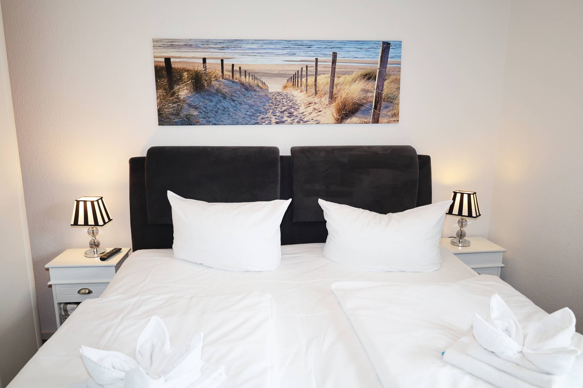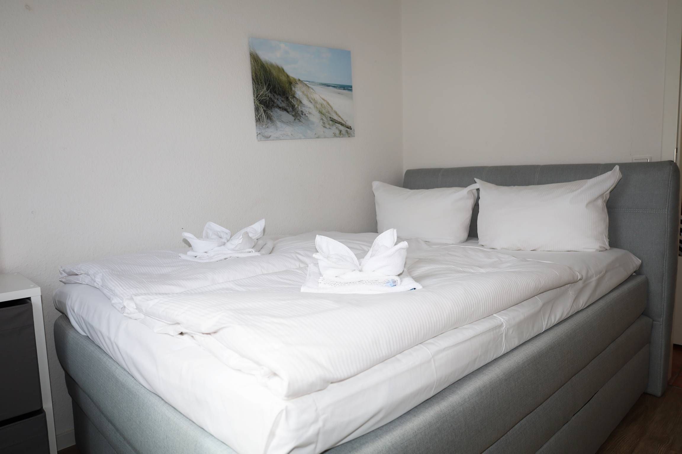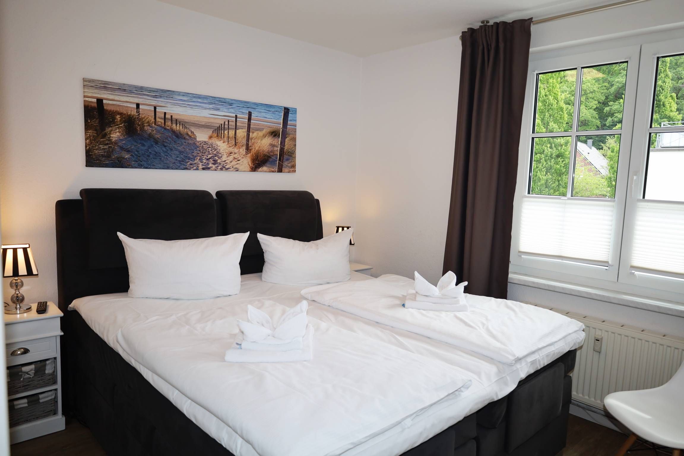 Das Appartement verfügt über zwei Schlafzimmer, das jeweils mit einem Doppelbett ausgestattet ist. Beide Schlafzimmer verfügen über einen zusätzlichen Fernseher.