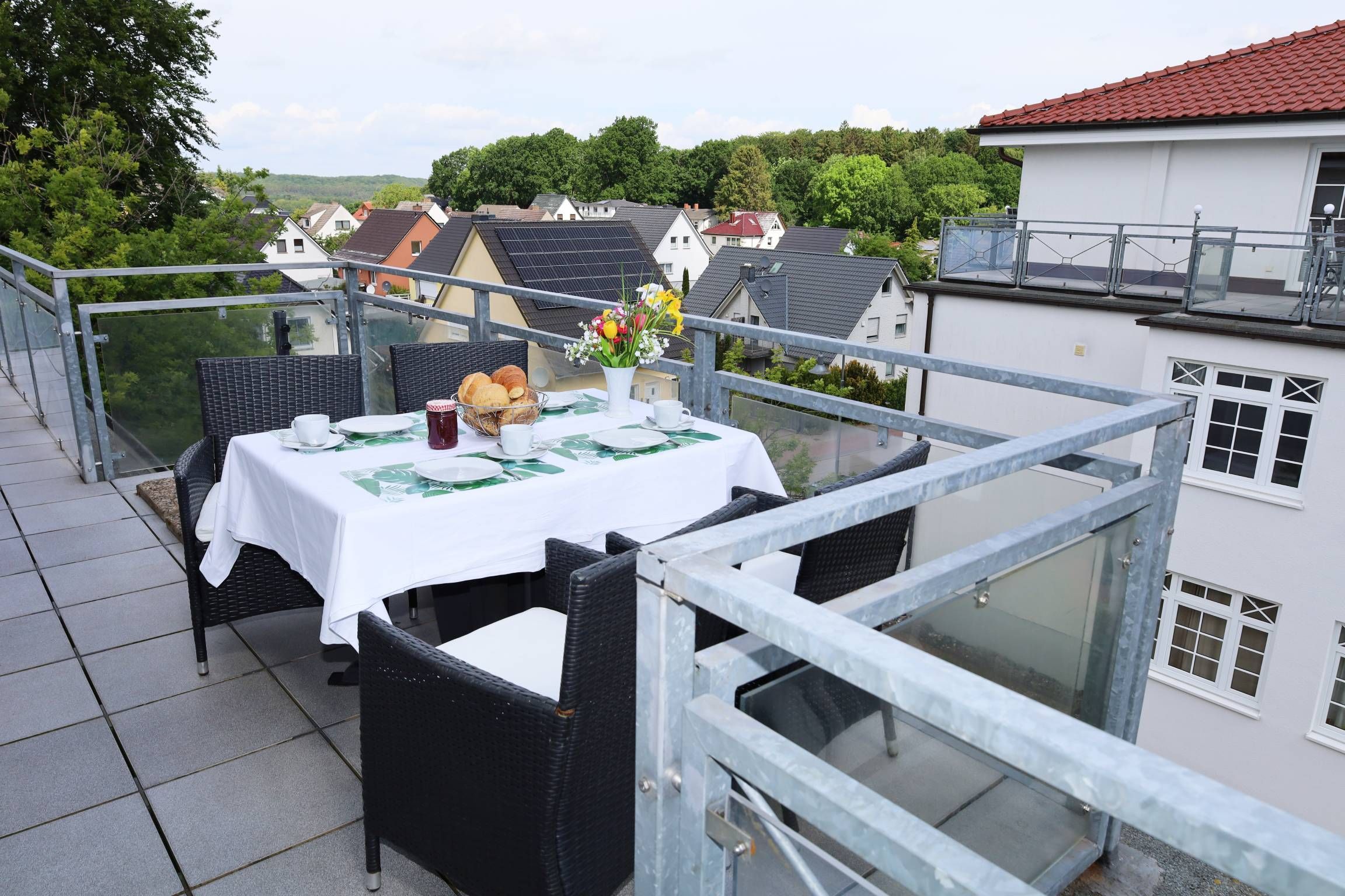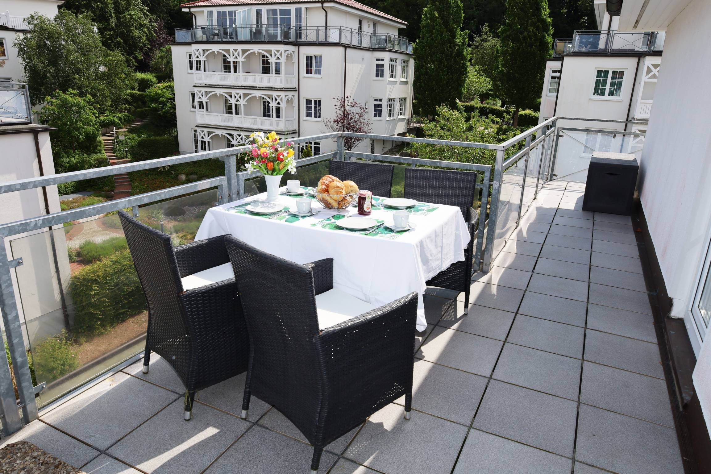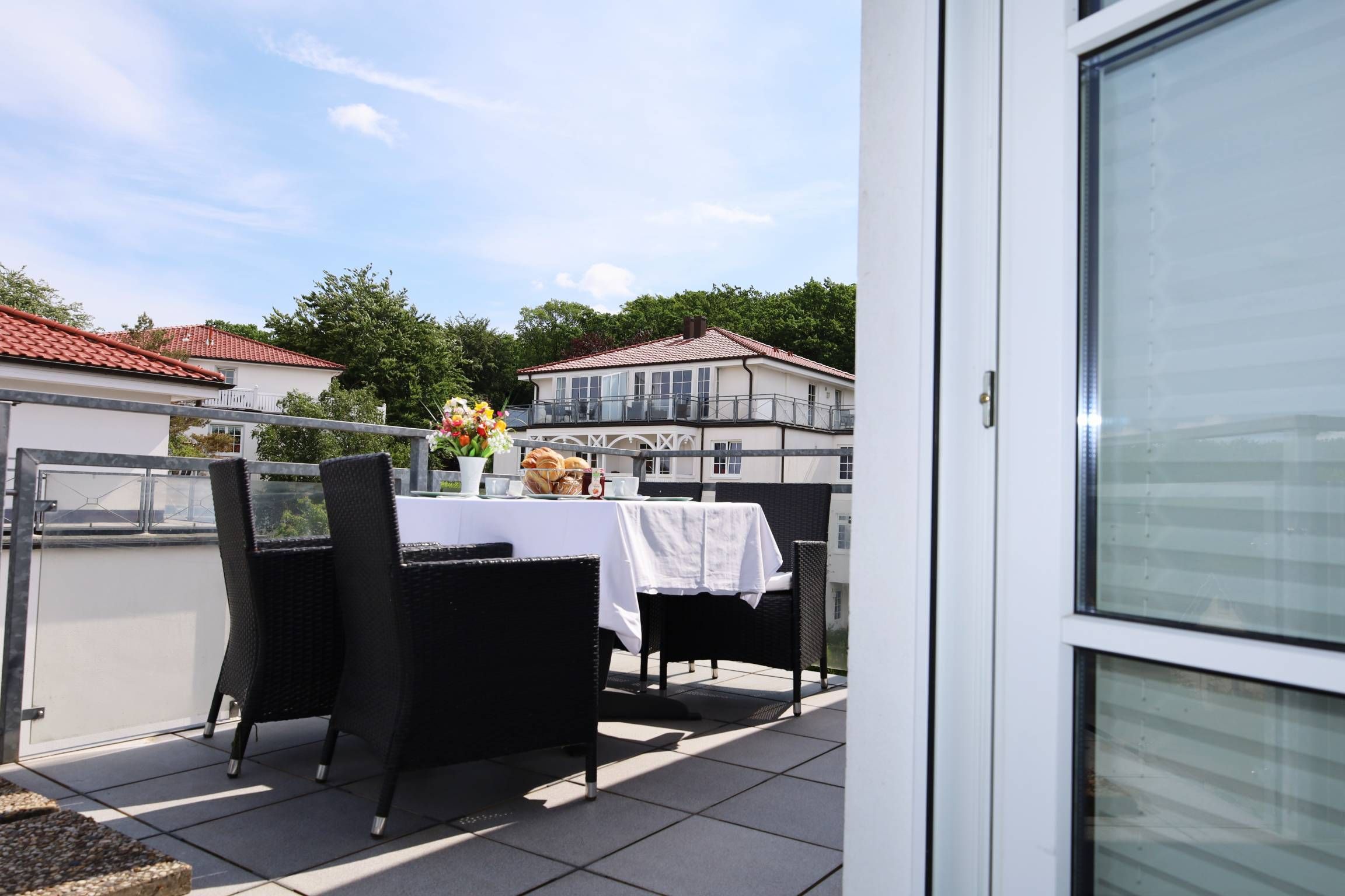 Ein besonderes Highlight des Penthouses ist die großzügig umlaufende Dachterrasse. Von hier aus genießen Sie einen atemberaubenden Blick über Binz, das Meer und die Granitz.