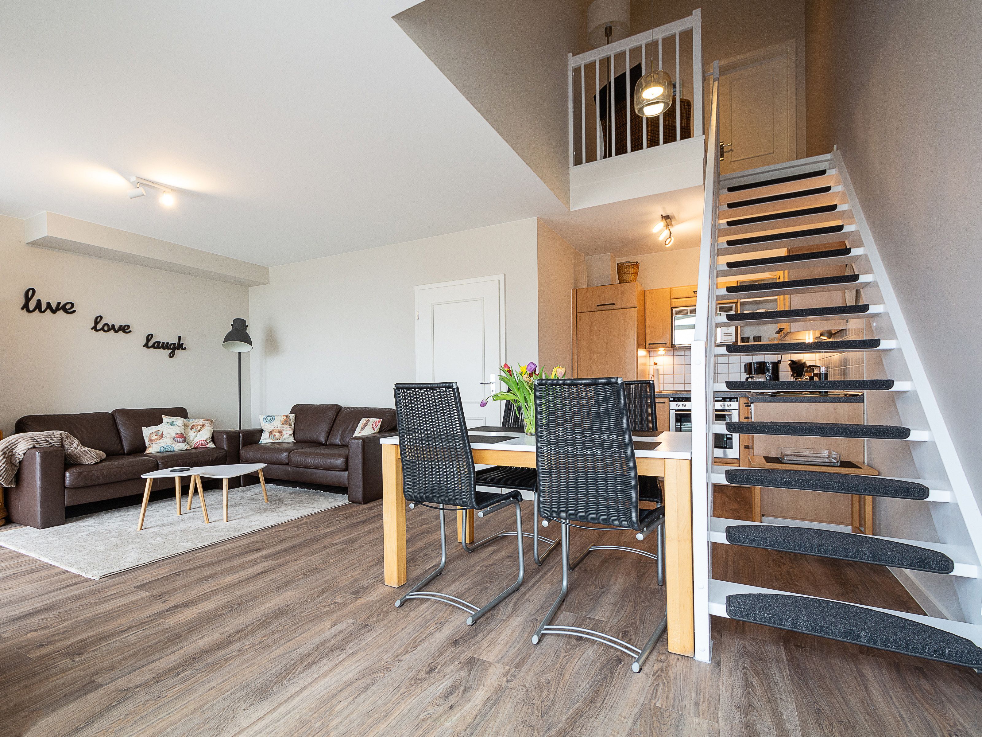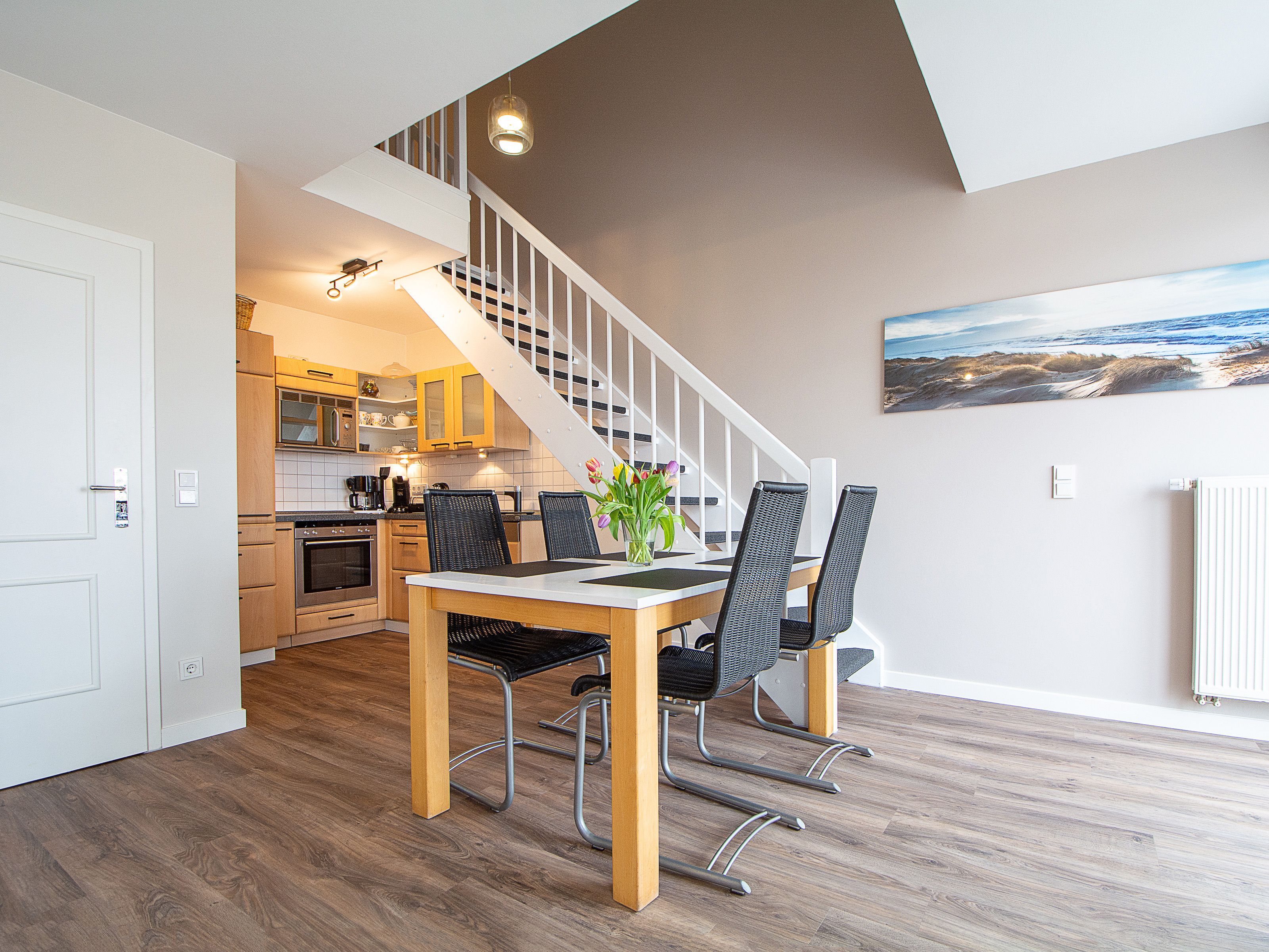 Herzlich willkommen in der Ferienwohnung Nr. 41 im Haus Ostseestrand! Die liebevoll und gemütlich eingerichtete 3-Raum-Maisonette-Ferienwohnung befindet sich im zweiten Obergeschoss des Hauses und verfügt über 2 Balkone in Nord-Ost-Richtung. Auf etwa 70 qm Wohnfläche können hier bis zu 4 Personen erholsame Urlaubstage genießen. Es empfangen Sie ein freundlicher Wohn-und Essbereich mit einer Küchenzeile, zwei Schlafzimmer, ein Duschbad sowie ein Gäste-WC. Beide Etagen der Wohnung sind mit hochwertigen antiallergischen und hygienischen Designer-Vinyl ausgestattet.