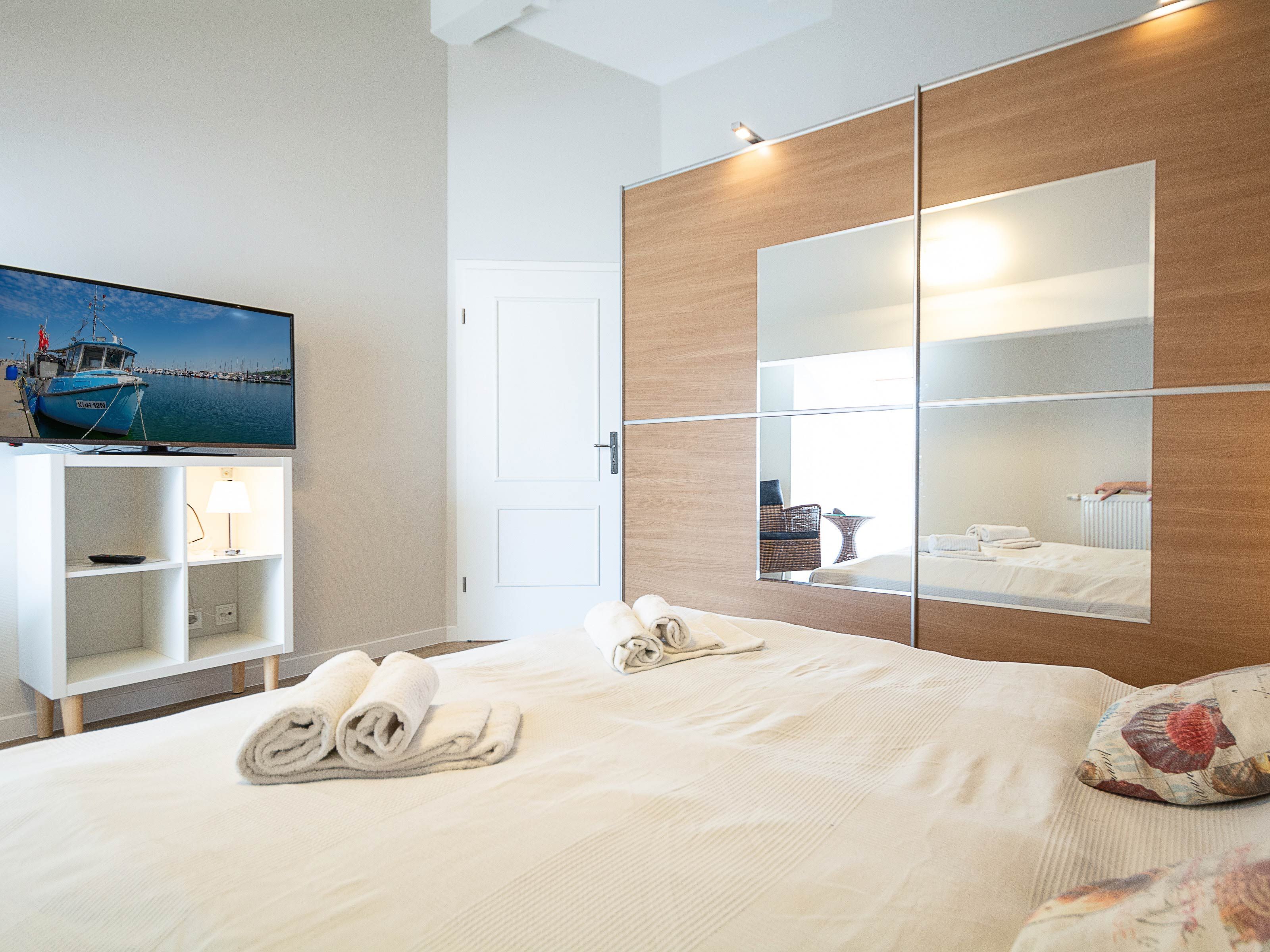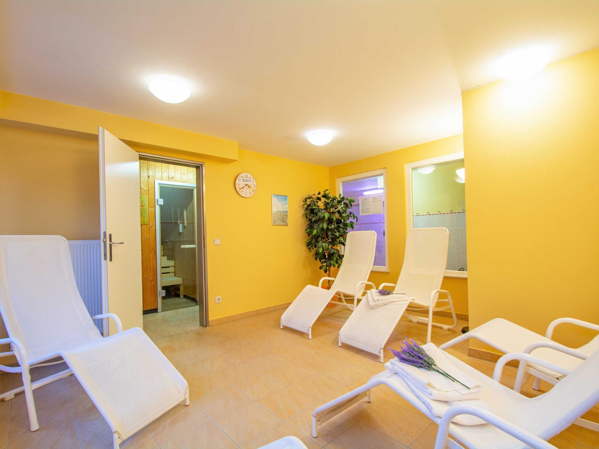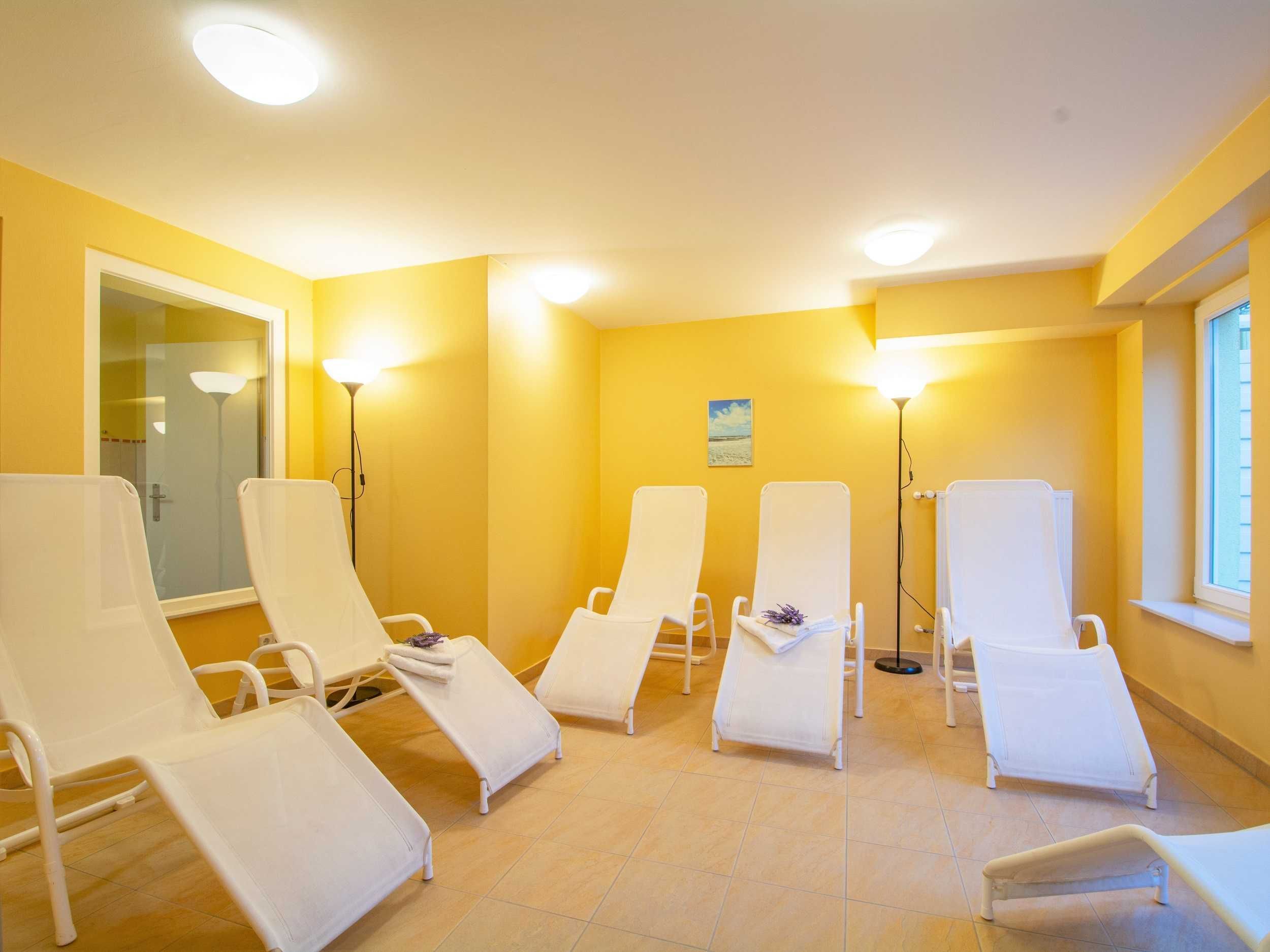 Aber auch an kalten Tagen ist die Wohnanlage ein Top-Urlaubsziel: Unseren Gästen steht kostenlos eine Sauna zur Verfügung. Weiterhin gibt es einen Aufzug und einen Fahrradabstellraum im Haus. Waschmaschine und Wäschetrockner können gegen Gebühr benutzt werden. Die Ferienwohnung verfügt über zwei Balkone mit Meerblick und einen Pkw-Stellplatz.