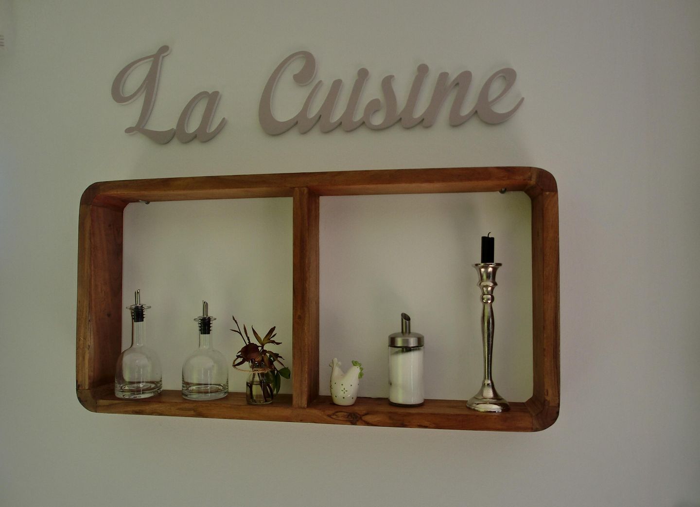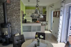 - offene, gut ausgestattete Küche inkl. Geschirrspülmaschine, Herd mit Backofen, Mikrowelle, Kühlschrank mit kleinem Gefrierteil, Kaffeemaschine, Toaster, Geschirr, Besteck und Gläser ausreichend vorhanden