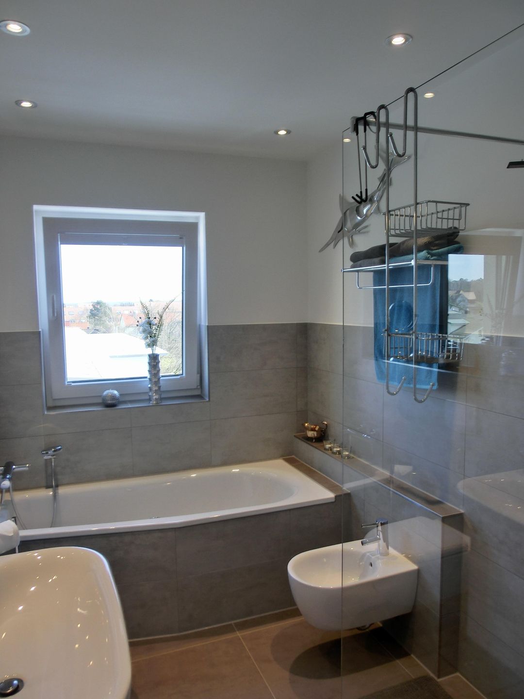 - 1 großes Tageslichtbadezimmer mit Badewanne, Dusche und Bidet