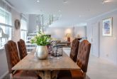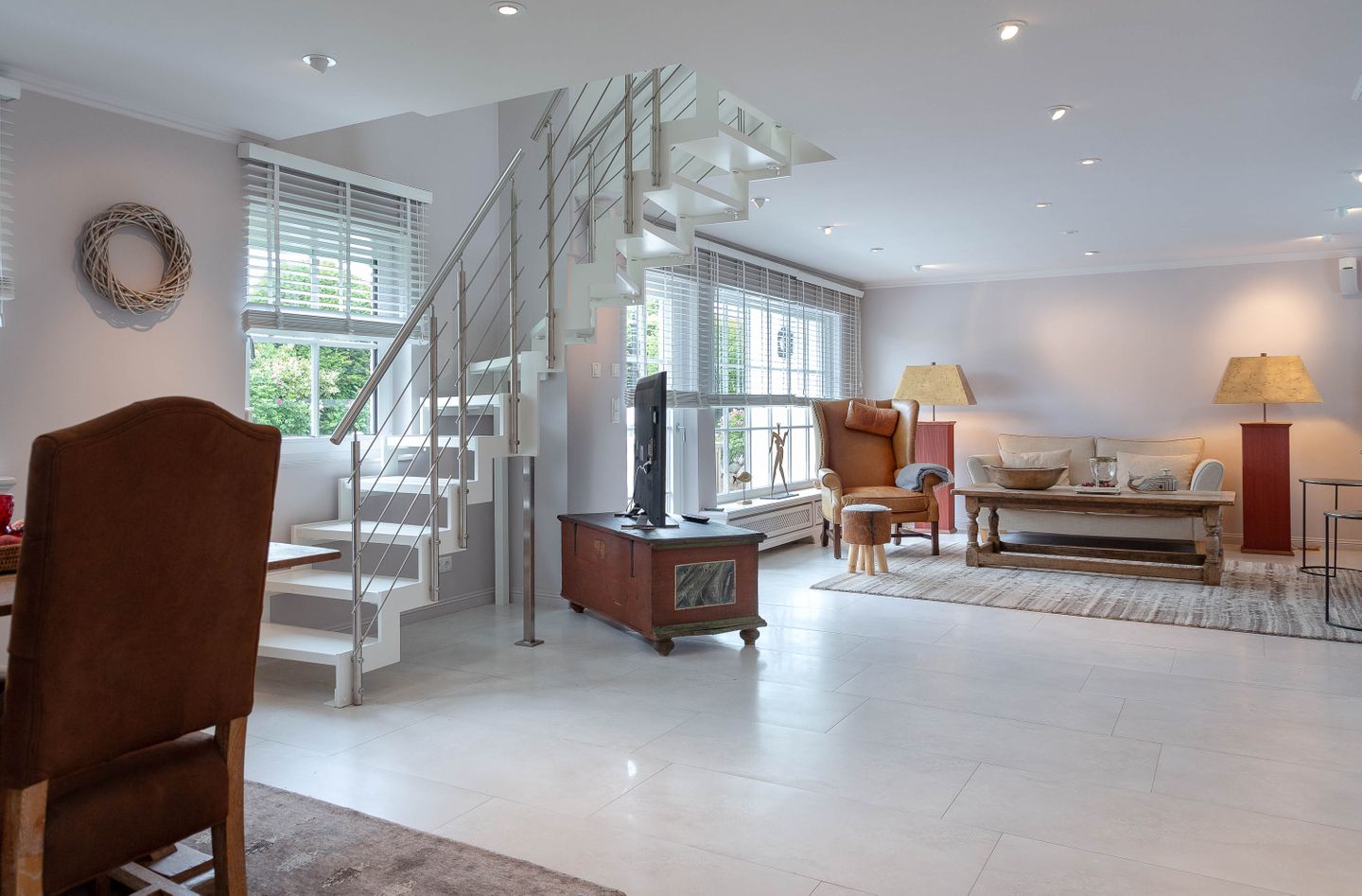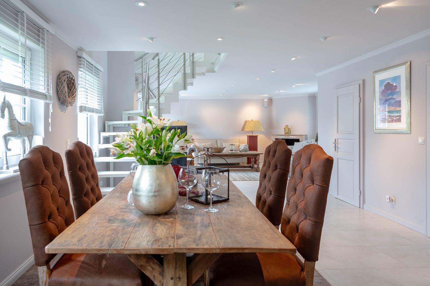Die Einrichtung überzeugt mit ihren hochwertigen Tischlereinbauten und den stilvollen Details. Ob in weichen Polstern , am großen Esstisch oder auf der Terrasse: Es bieten sich viele Möglichkeiten gemeinsam zu entspannen und zu genießen. Zu jeder Jahreszeit.