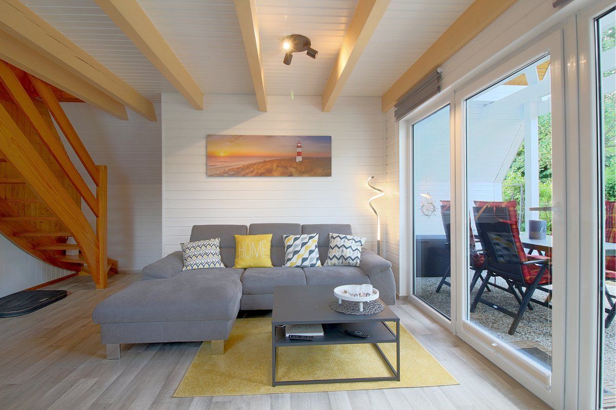 Geschmackvoll im maritimen Stil eingerichtetes Ferienhaus für bis zu 4 Personen und 1 Kleinkind in einem beliebten Ferienpark nur wenige Gehminuten vom Strand entfernt.