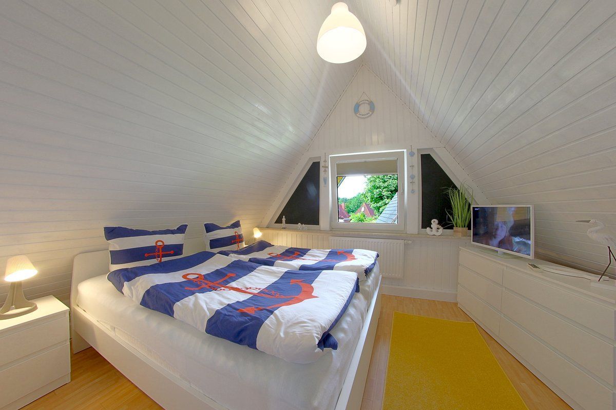 Im Obergeschoss befindet sich das Elternschlafzimmer mit Doppelbett und TV, sowie ein weiteres Schlafzimme mit 2 Einzelbetten und TV.