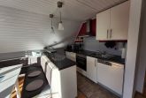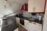 Das geräumige Wohnzimmer wird ergänzt durch eine Einbauküche und gemütlicher Essecke mit ausziehbarem Esstisch (max. 2 m). Vom Wohnzimmer aus ist der Süd-Westbalkon zu erreichen.