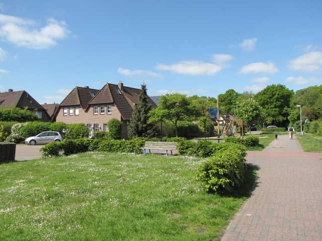 Die Ferienwohnung - Hollwert 20 c - befindet sich in einem Doppelhaus (oben rechts). Sie hat einen separaten Eingang und liegt in ruhiger Wohnlage am Ende einer Sackgasse im Herzen von Dangast.