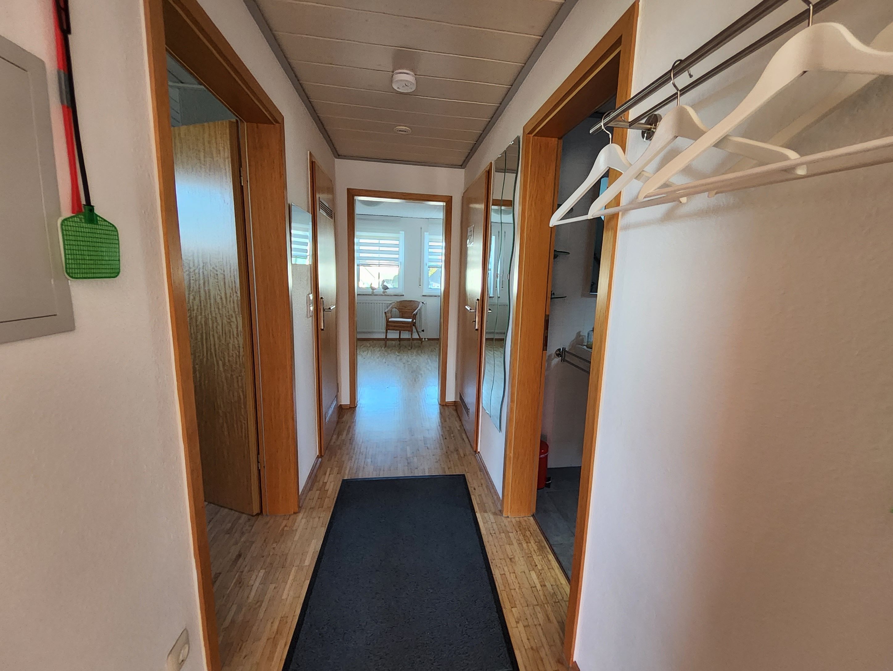 Komfort-Ferienwohnung mit einer Grundfläche von ca. 85 m2 bietet Platz für 5 Feriengäste. Die Wohnung befindet sich im Obergeschoss einer Doppelhaushälfte mit separatem Eingang, ausgebautem Dachgeschoss und Balkon.