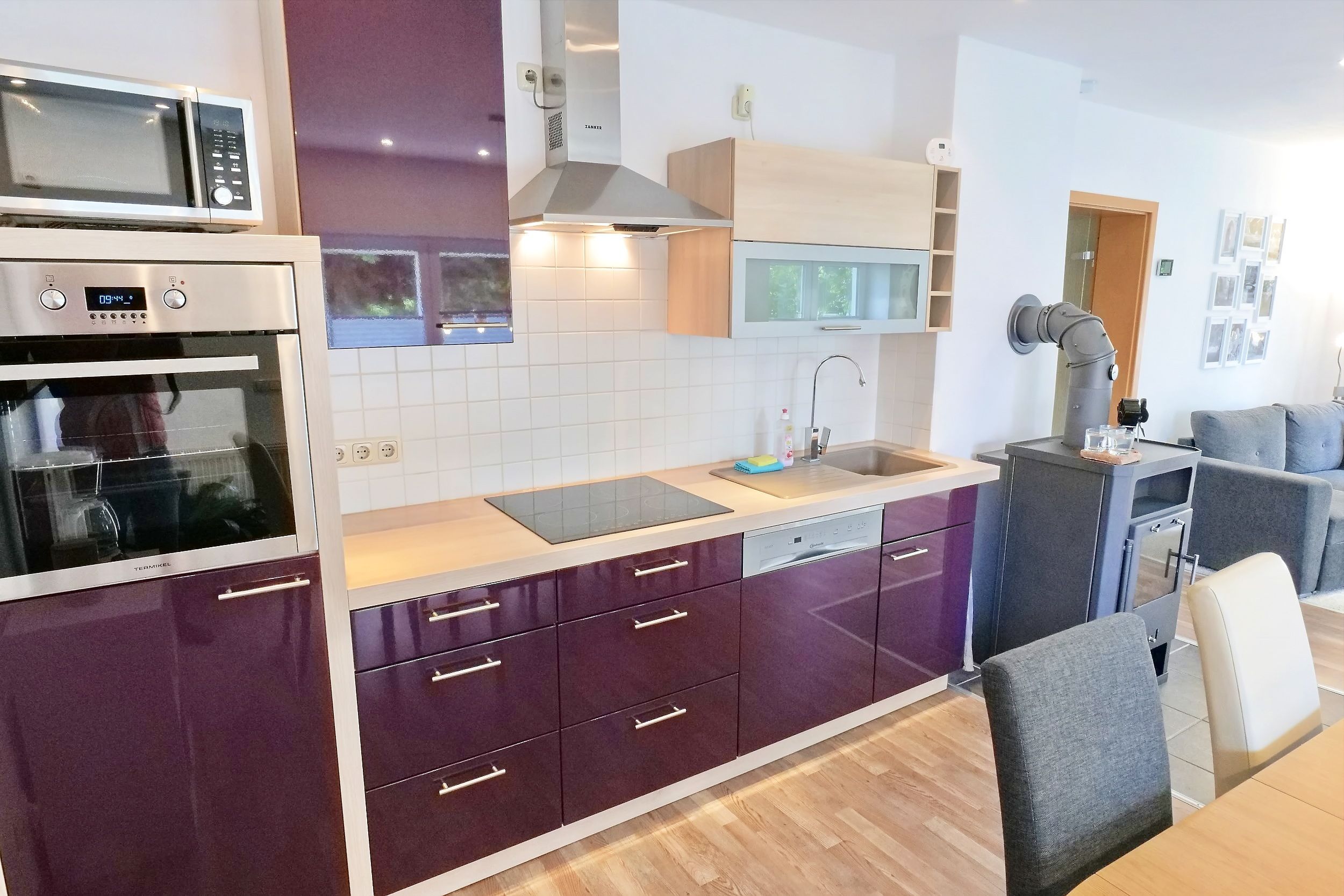 2014 neu ausgebaut und hochwertig sowie umfangreich ausgestattet, wird es Ihnen hier kaum an etwas fehlen. Vor allem in den Herbst-/ und Wintermonaten können Sie unser Highlight, den gemütlichen Kamin in Aktion erleben. Aber auch die anderen Jahreszeiten können Sie in unserer Ferienwohnung genussvoll und entspannt genießen. Eine neue Terrasse von 6 Quadratmeter, gebaut 2021 vervollständigt die Ferienwohnung.