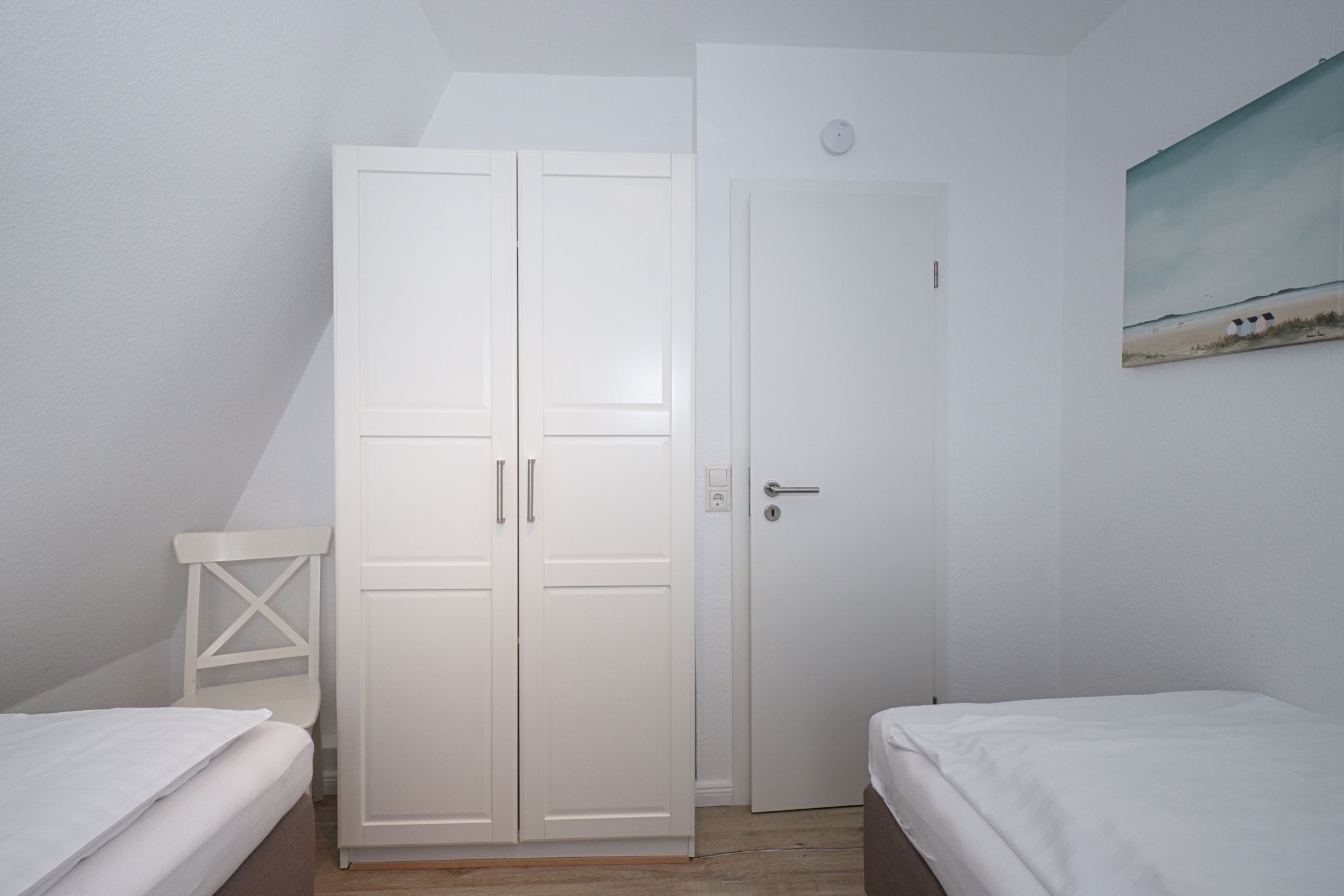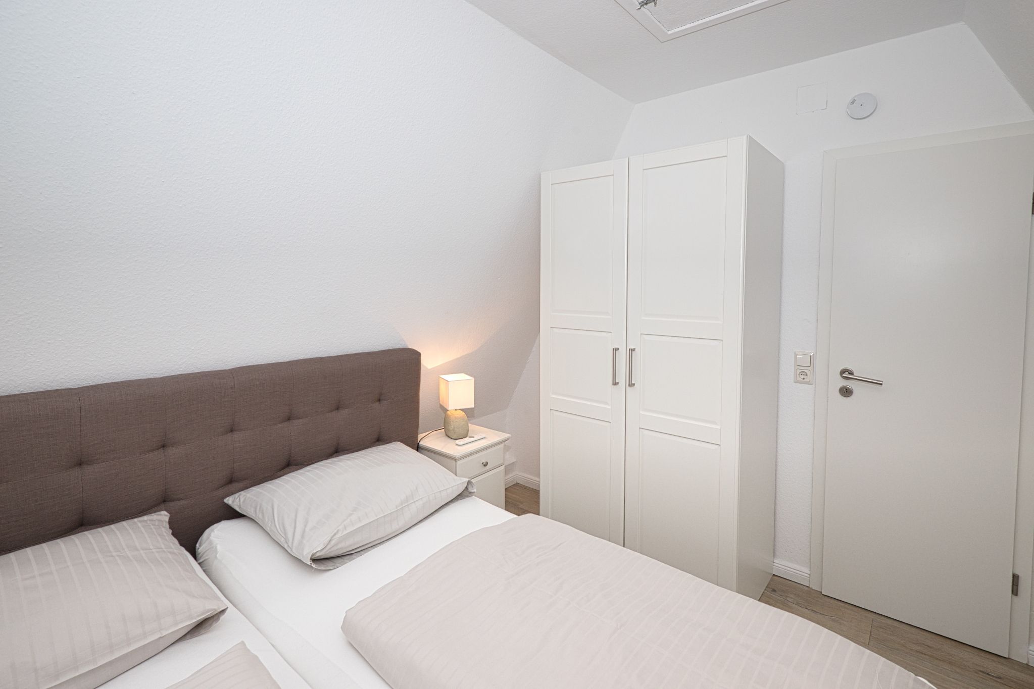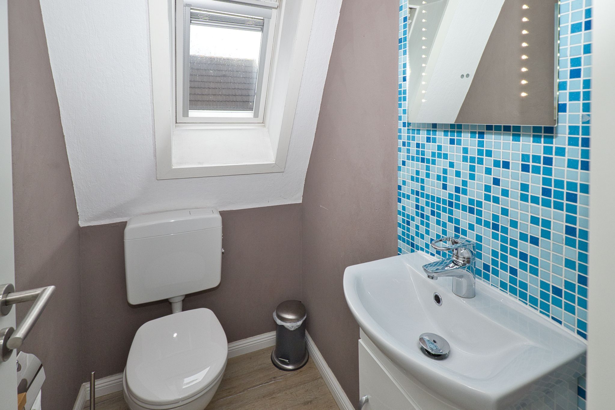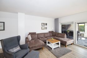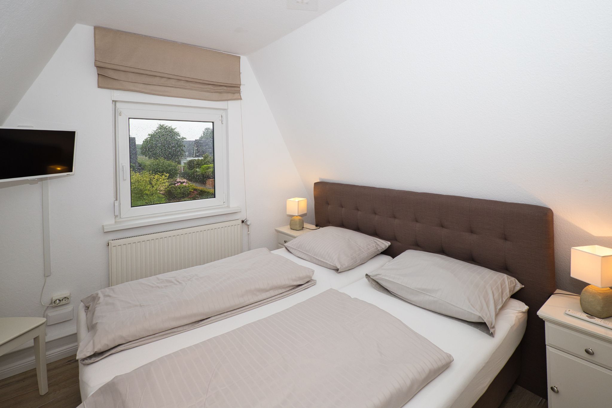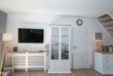 Ringwall 47, 4-Raum, ca. 74m², bis zu 6 Personen, Urlaub ganz individuell und Strandnah. Das moderne Ferienhaus direkt hinter dem Deich mit einer großzügiger Aufteilung, viel Komfort und eigenem Garten in ruhiger Lage. Sie werden im Eingangsbereich (verglaster Windfang) über den Flur mit Zugang zum Duschbad (Dusche/WC), zur separaten und interessant aufgeteilten Küche (mit Waschmaschine), im hellen und sehr gemütlichen Wohn- und Essbereich empfangen. Von hier geht es auch in den sehr schönen sonnigen Garten und über ein Holztreppe ins 1.OG (mit Treppenschutzgitter am oberen Ende). Hier erwarten Sie 3 gut ausgestattete Schlafzimmer (eins mit einem zusätzlichen TV) mit passgenauen Einbaumöbeln und Schlafgelegenheiten für bis zu 6 Personen. In einem Schlafbereich befindet sich sogar eine Waschmöglichkeit. 1 weiteres Gäste-WC befindet sich ebenfalls auf der Etage. Familien sind Herzlich willkommen.