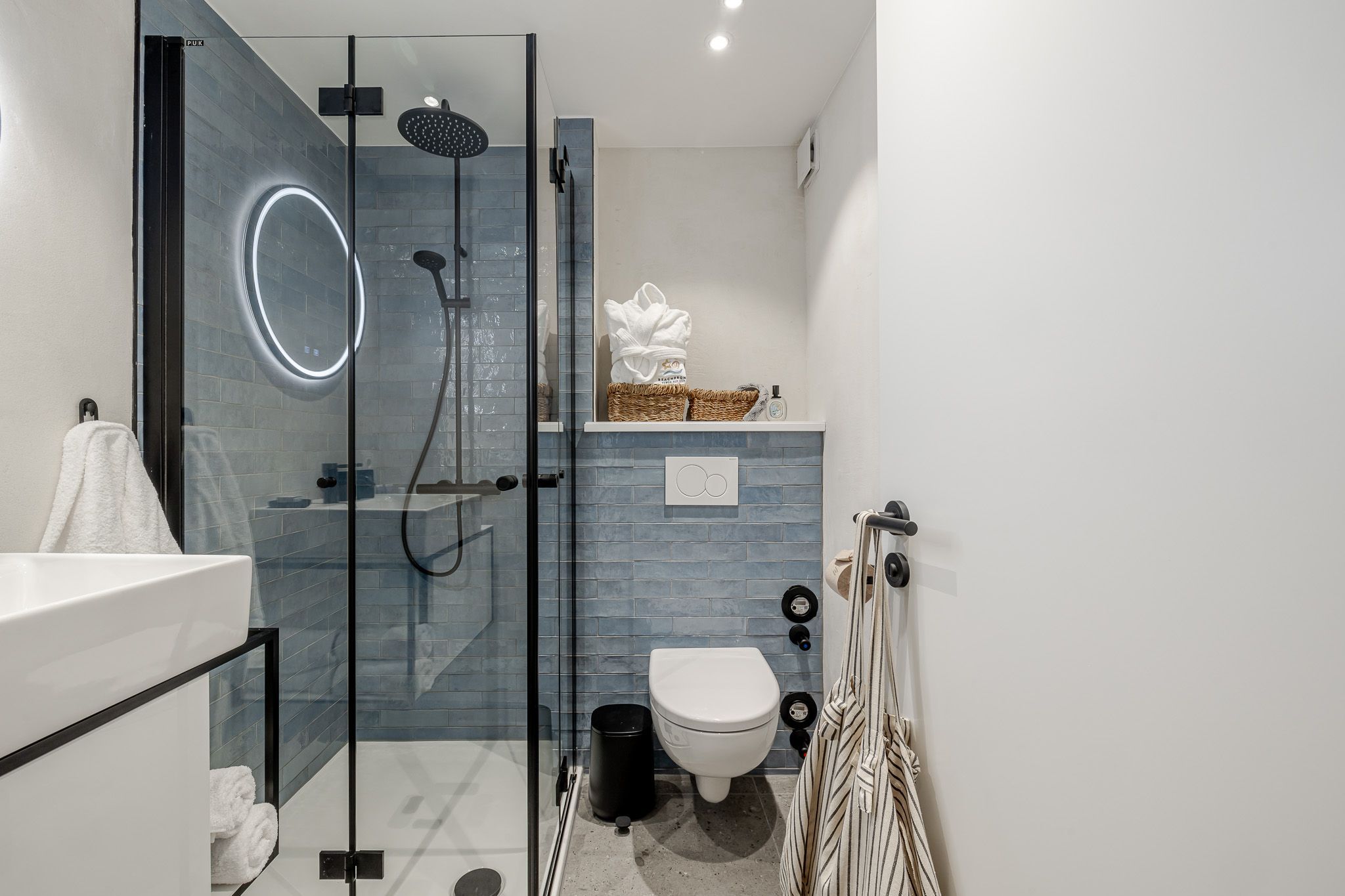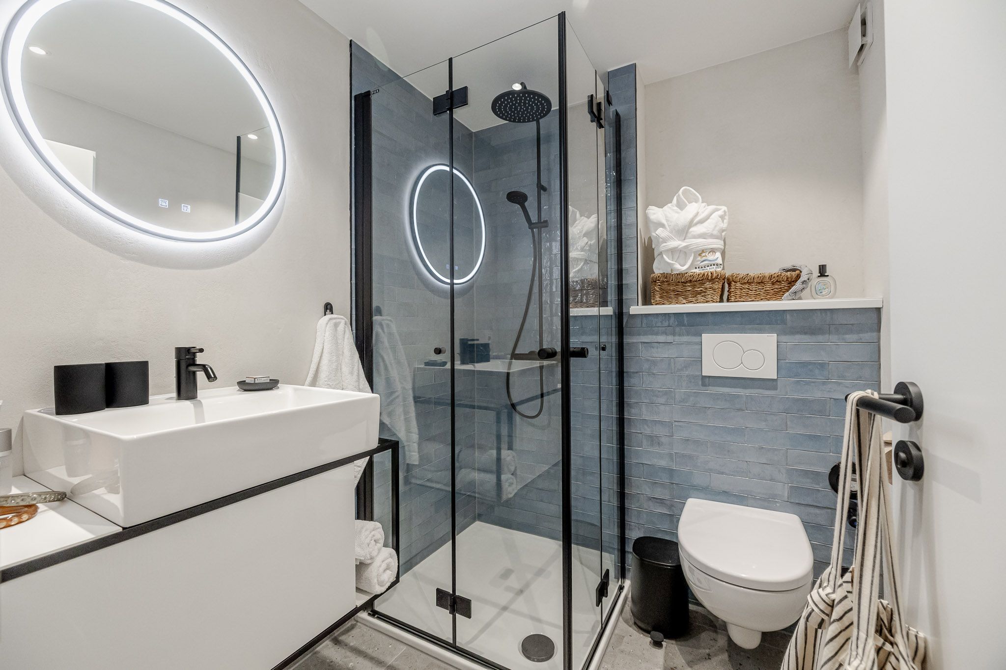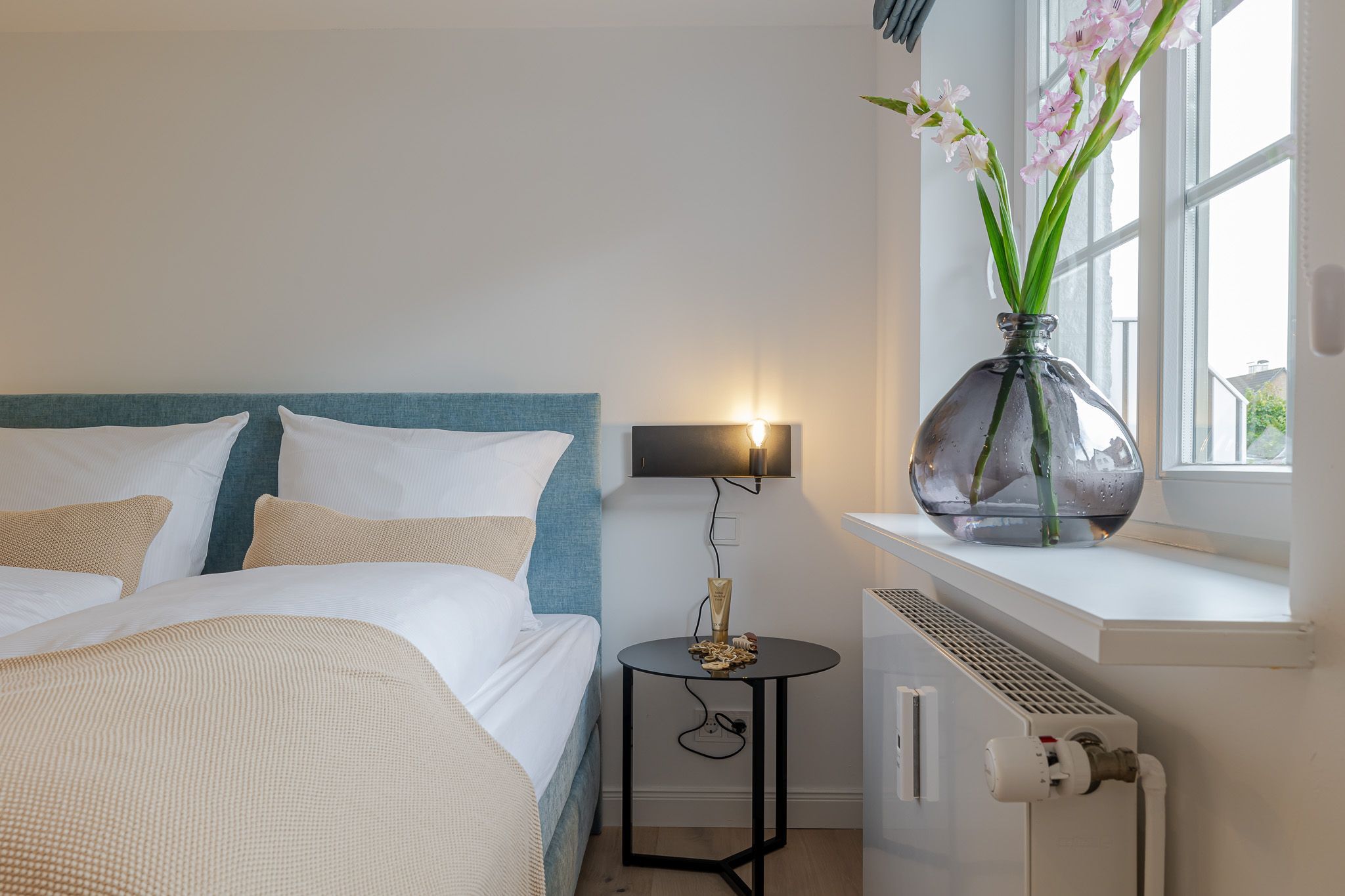 Beginnen Sie jeden neuen Tag nach einer erholsamen Nacht, welche Sie in Ihrem Schlafzimmer dank des höchst komfortablen Boxspringbetts der Marke Schramm verbracht haben. Direkt angrenzend befindet sich Ihre private Wellness-Oase. Das moderne Badezimmer, in den „Inselfarben“ Meerblau und Sand, erwartet Sie mit einer prickelnden Regendusche sowie einer angenehmen Fußbodenheizung, welche gerade an den etwas frischeren Tagen ihre wohltuende Wirkung voll entfaltet.