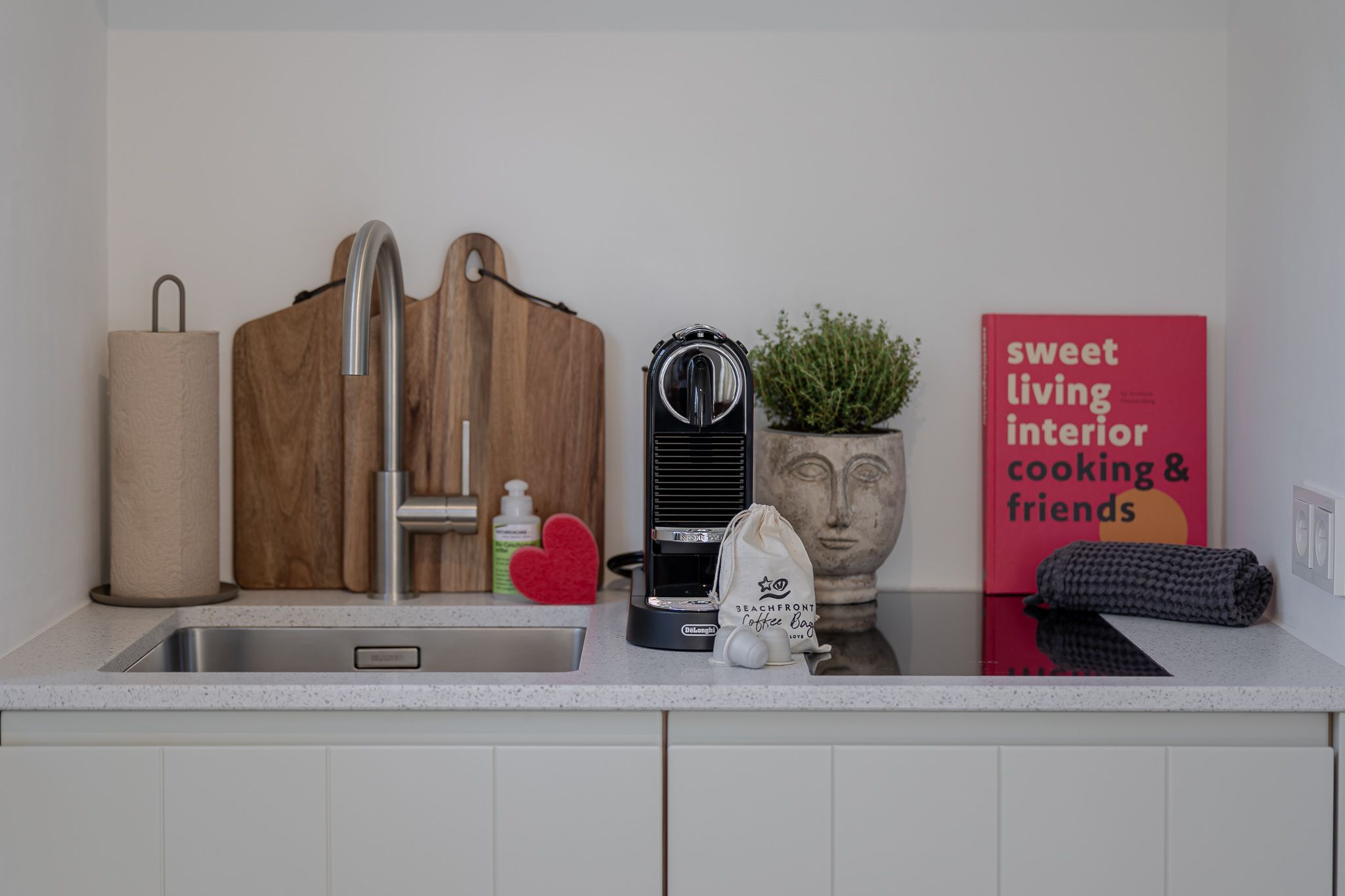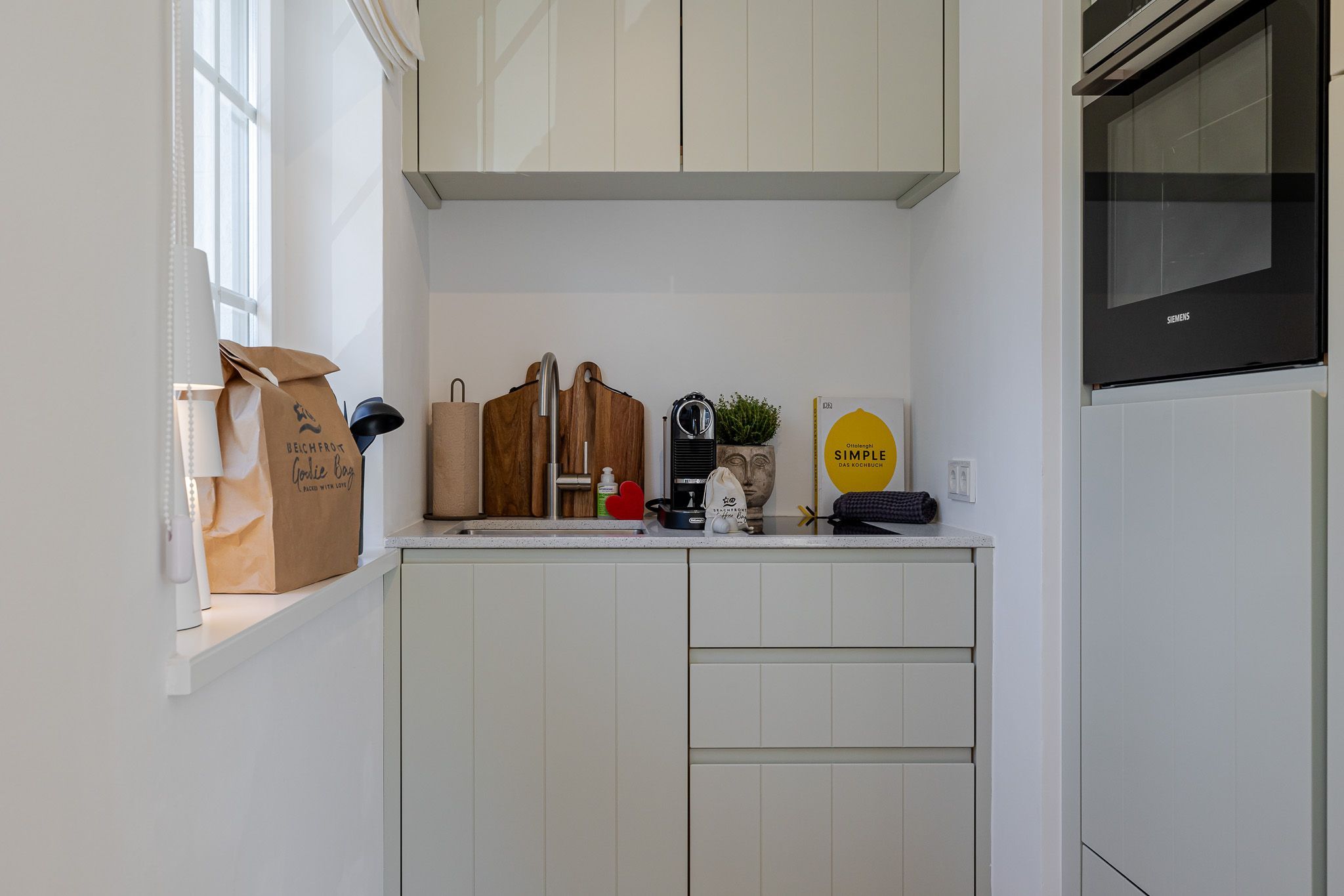 Klein, aber oho! Die exklusiv eingerichtete Küche entpuppt sich als ein vollwertiges Kochparadies dank jeder Menge nützlichem Equipment und Geräten von Top-Markenherstellern, wie z.B. Miele.