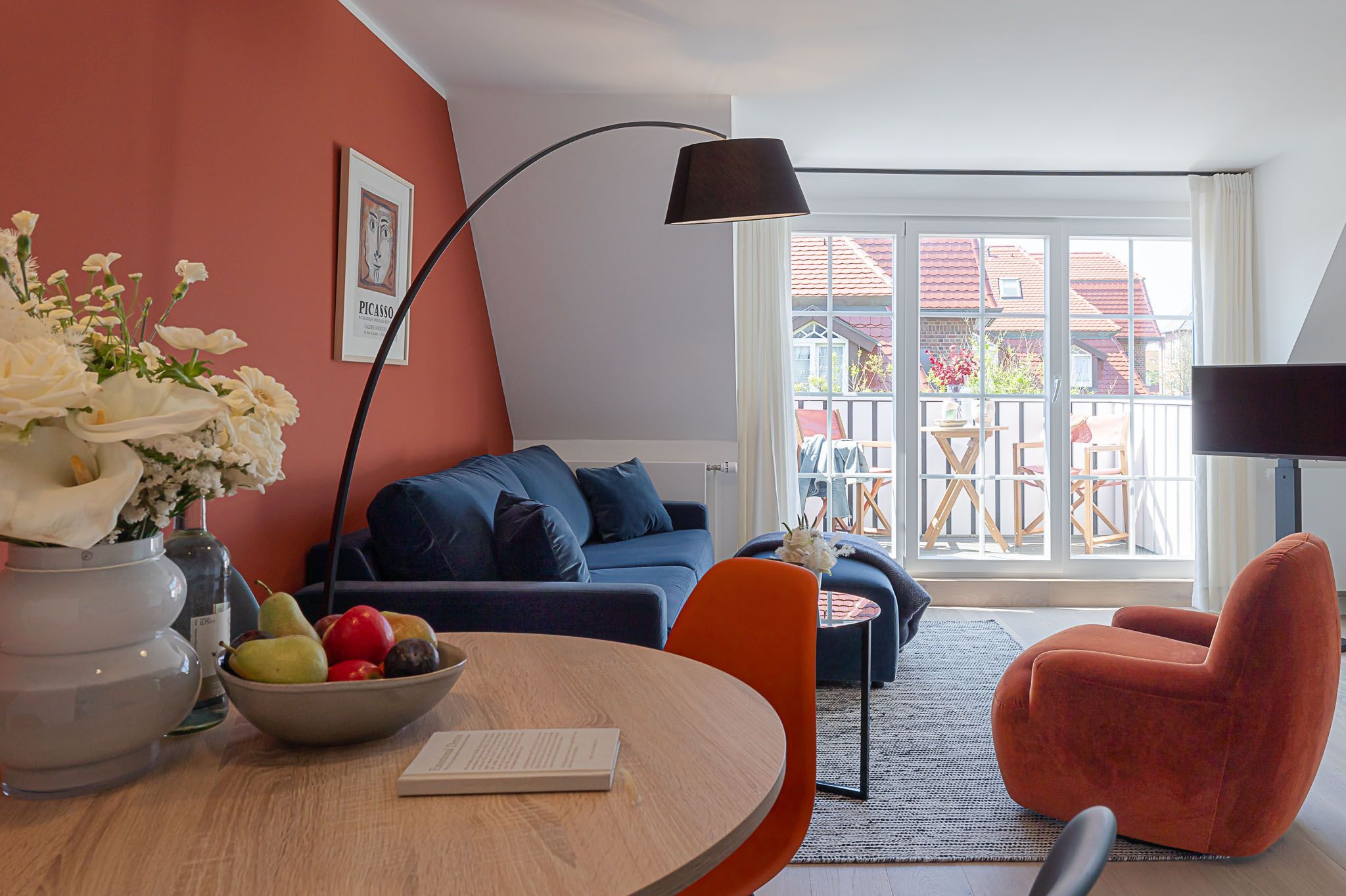 Hier im Wohnbereich steht bei Bedarf ein exklusives Schlafsofa für 2 Personen zur Verfügung, welches am Abend im Handumdrehen umgebaut ist und erholsame Nächte garantiert.