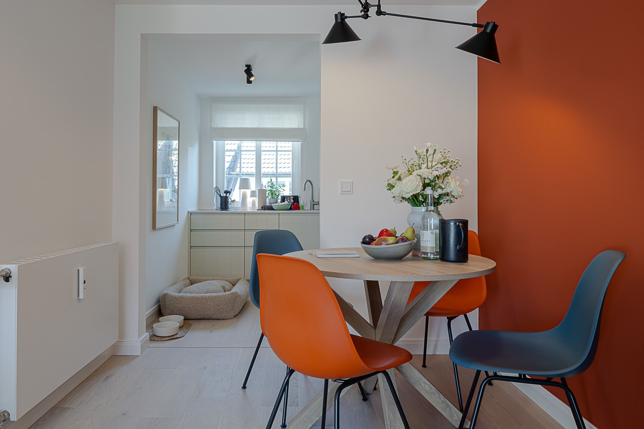 Auf dem Mitteldeck (OG) in Dock 6c betreten Sie die Wohnung und gelangen über den Flur in den geschmackvoll designten Wohn- und Essbereich. Viel Licht, ein für die Insel typisches Eichenparkett und eine anspruchsvolle Einrichtung vermitteln sofort: Das war eine gute Wahl, denn das heiß ersehnte und lang vermisste Sylt-Feeling entfaltet sich sofort.