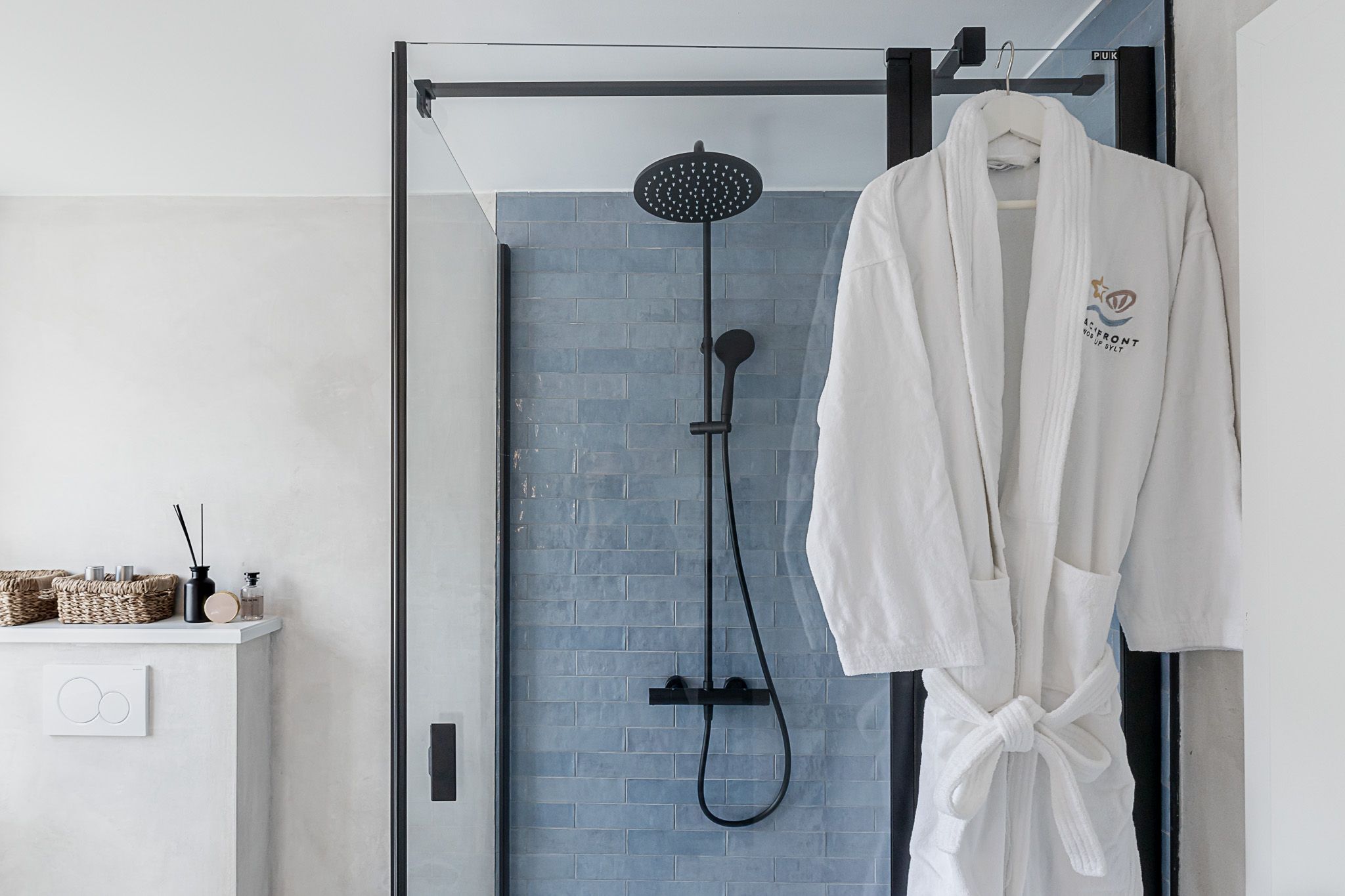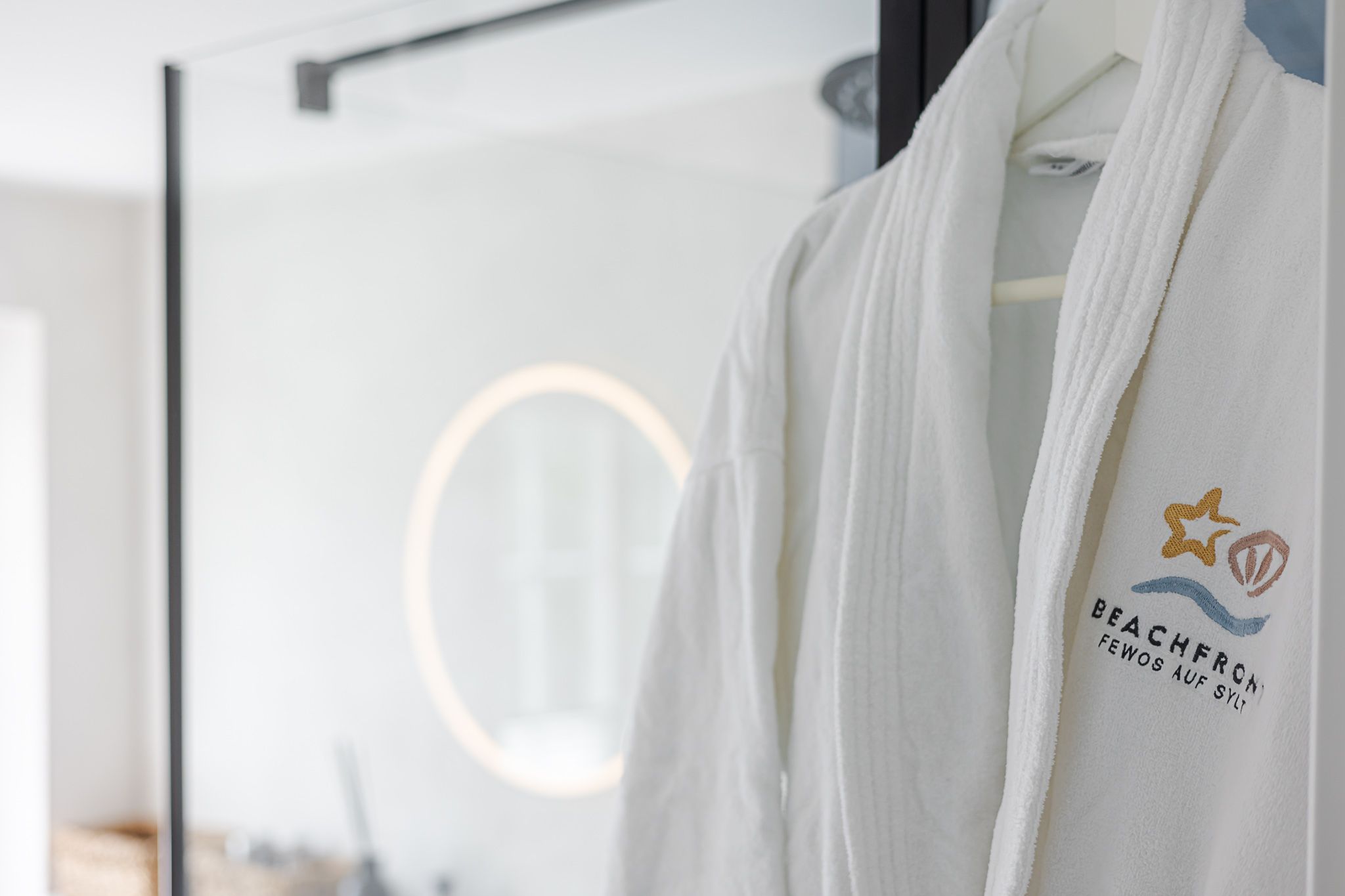 Im Bad treffen Sie auf ein Farbkonzept in Meerblau und Sand - Farben, denen Sie auch jederzeit auf der Insel begegnen. Ein echtes Highlight in Ihrer kuscheligen Wellnessoase ist die erfrischende Regendusche, unter der man auch ganz gerne mal ein wenig länger verweilt. Die Fußbodenheizung und der Handtuchwärmer sorgen an den etwas kühleren Tagen und Nächten für ein optimales Wohlbefinden. Nichts ist schließlich schlimmer, als im Bad zu frieren!