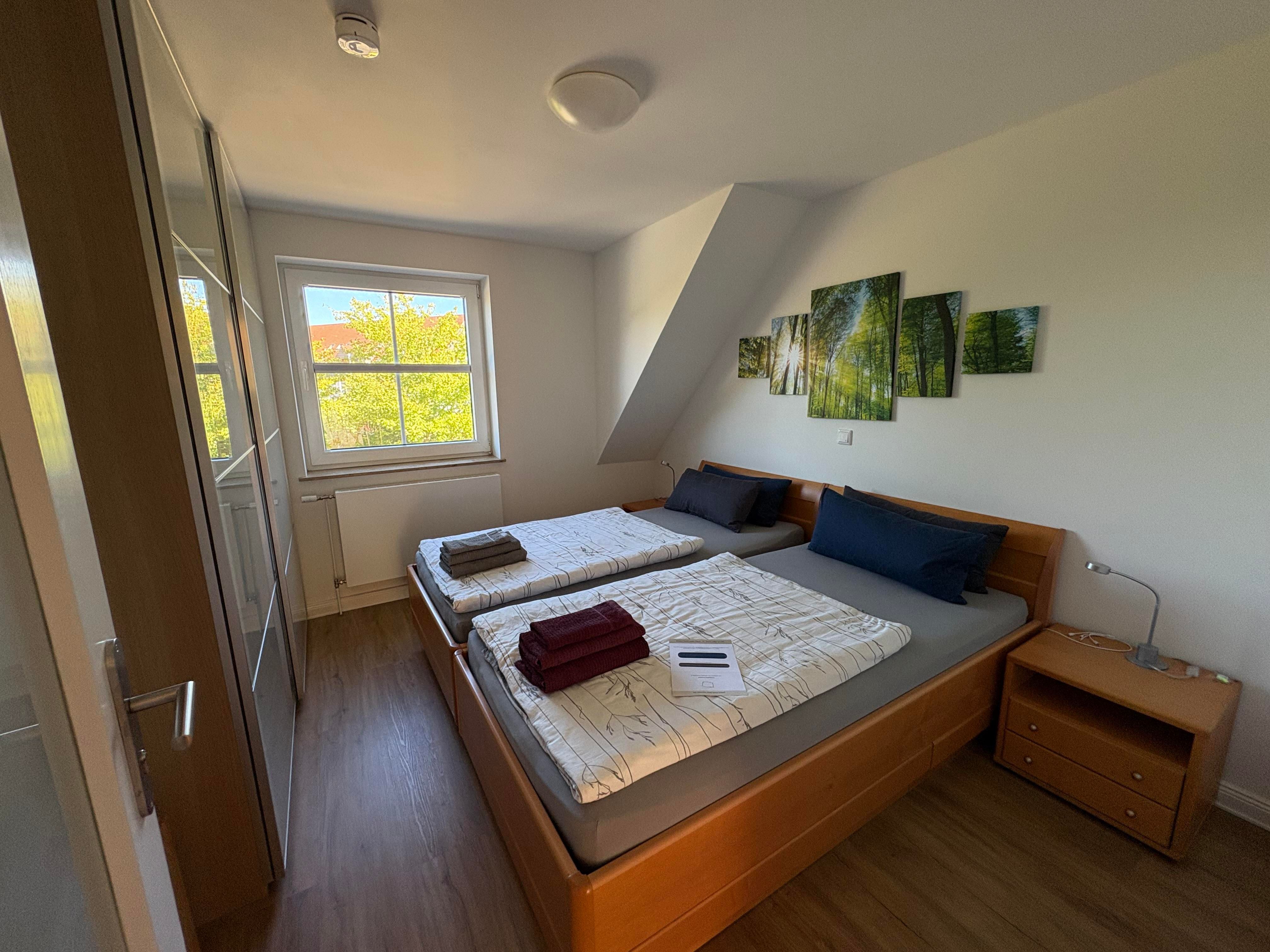 In fußläufiger Reichweite zur Ferienwohnung befinden sich ein Bäcker und ein Lebensmitteldiscounter, ein Parkplatz gehört zur Wohnung, ein abschließbarer Raum für Ihre Fahrräder ebenfalls.