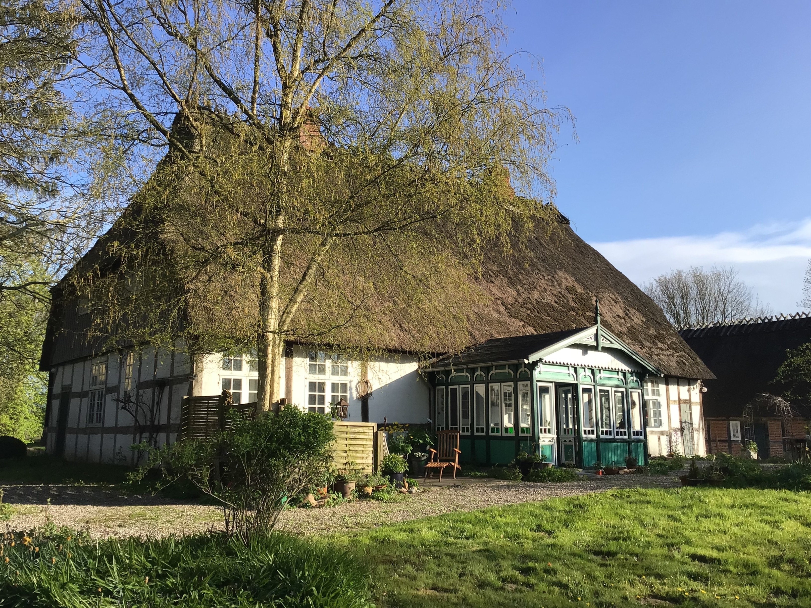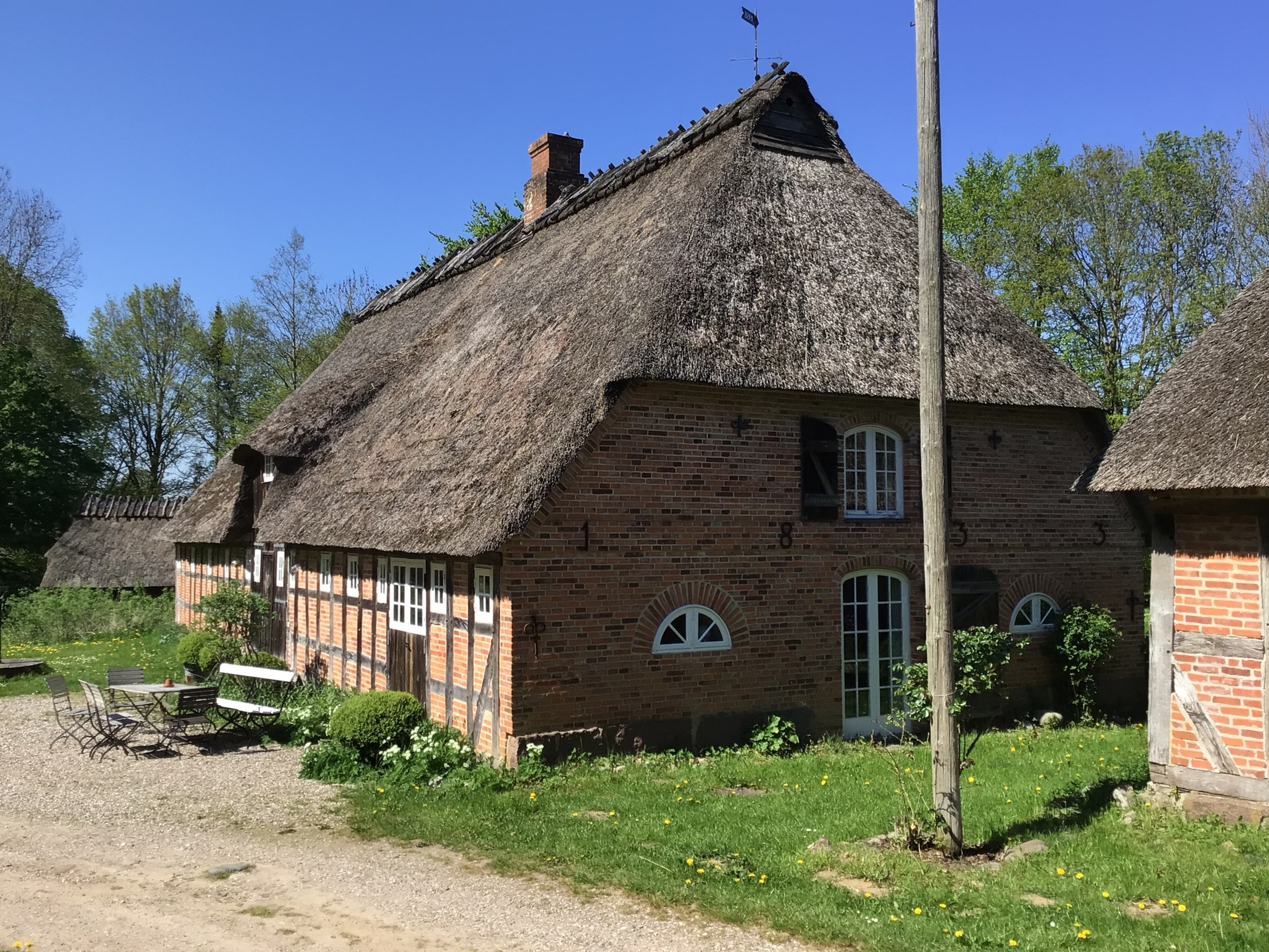 Reetgedeckte Dreiseit-Hofanlage in Angeln, unter Denkmalschutz stehend. Restauriert unter Berücksichtigung der ursprünglichen Materialien und Baupläne. Der Hof wird als ökologischer Ackerbaubetrieb im Nebenerwerb bewirtschaftet.
