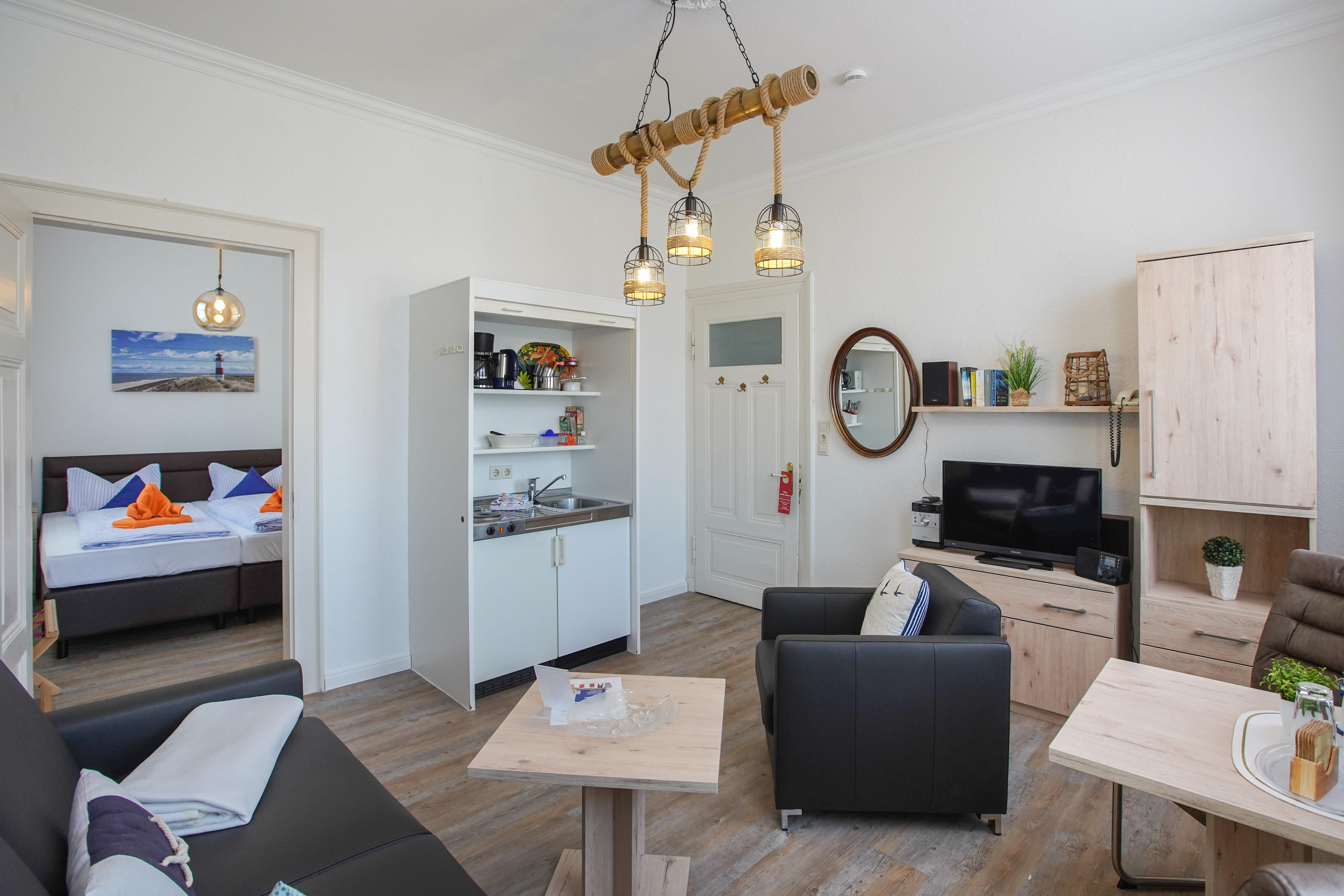 Das Hotel liegt direkt im Zentrum 30m vom Bahnhof direkt neben dem Kurpark im ruhigen Bahnhofspfad gelegen und wird ständig neu renoviert (Apartments 2018). zuletzt (Einzelzimmer 2019 und Suiten 2020, Apartment 2022). Das Hotel verfügt über drei Apartments, drei Einzelzimmer, 2 große Doppelzimmer und zwei Suiten. Alle Annehmlichkeiten wie Strand, Fußgängerzone, Bars Cafes und Einkaufsmöglichkeiten sind unweit zu erreichen. D Das Hotel liegt direkt neben/hinter der Touristeninformation und dem Kurpark. Kleines und gemütliches Hotel mit Flair und persönlichem Service erwartet Sie. Frühstücksbuffet mit frischem Obstsalat und Spezialkaffee lassen Ihren Urlaubstag erfolgreich beginnen. Für Anreisen nach 12 Uhr: bitte sich im Voraus in Verbindung mit dem Hotel setzen.