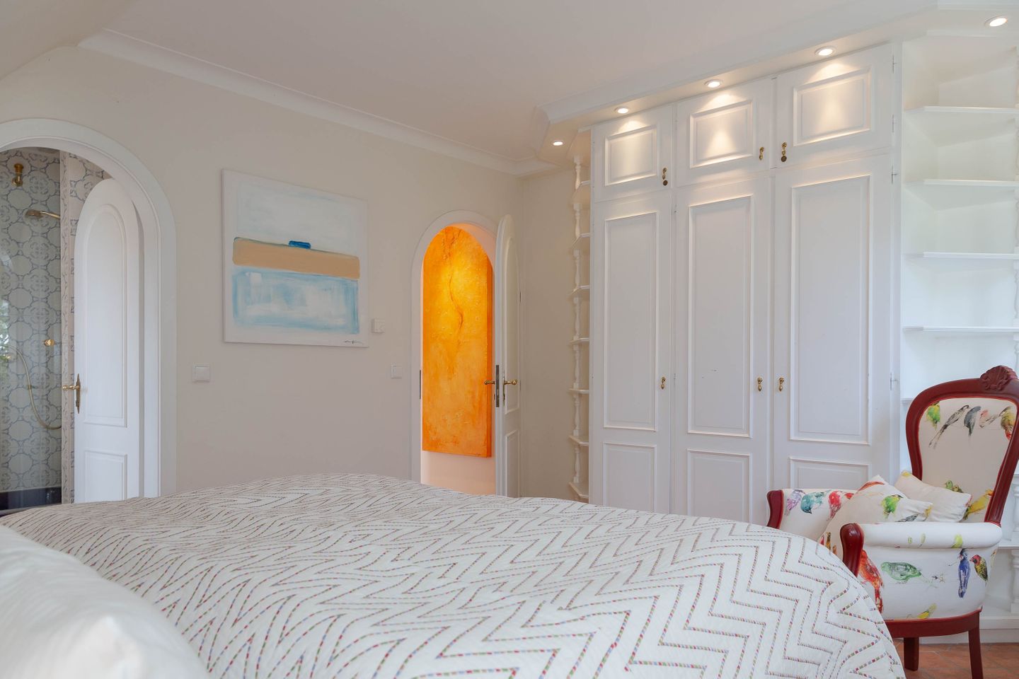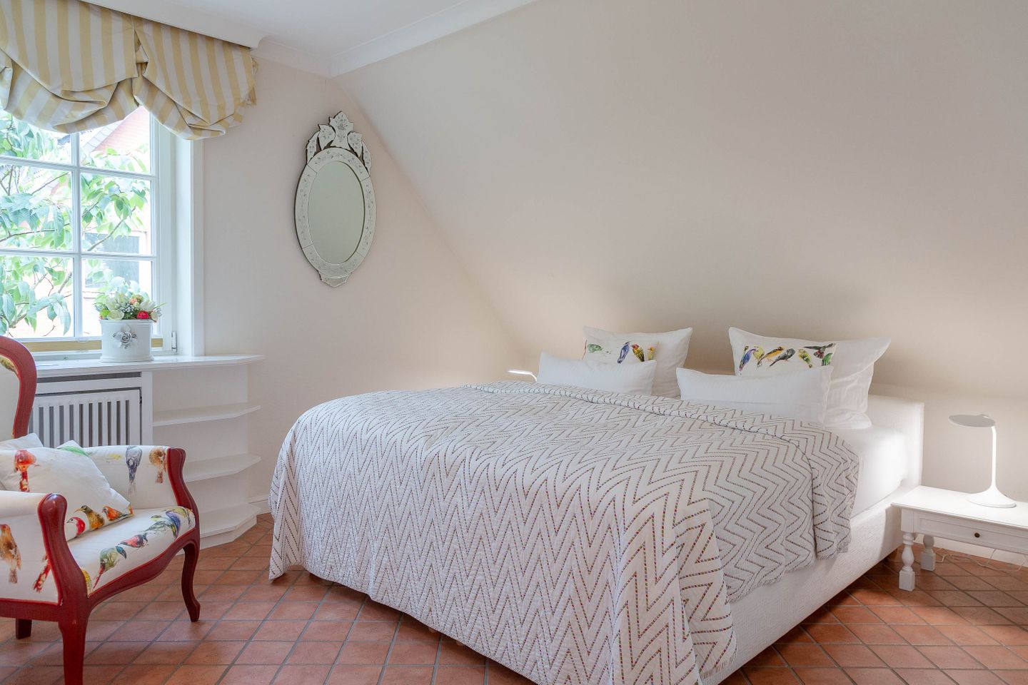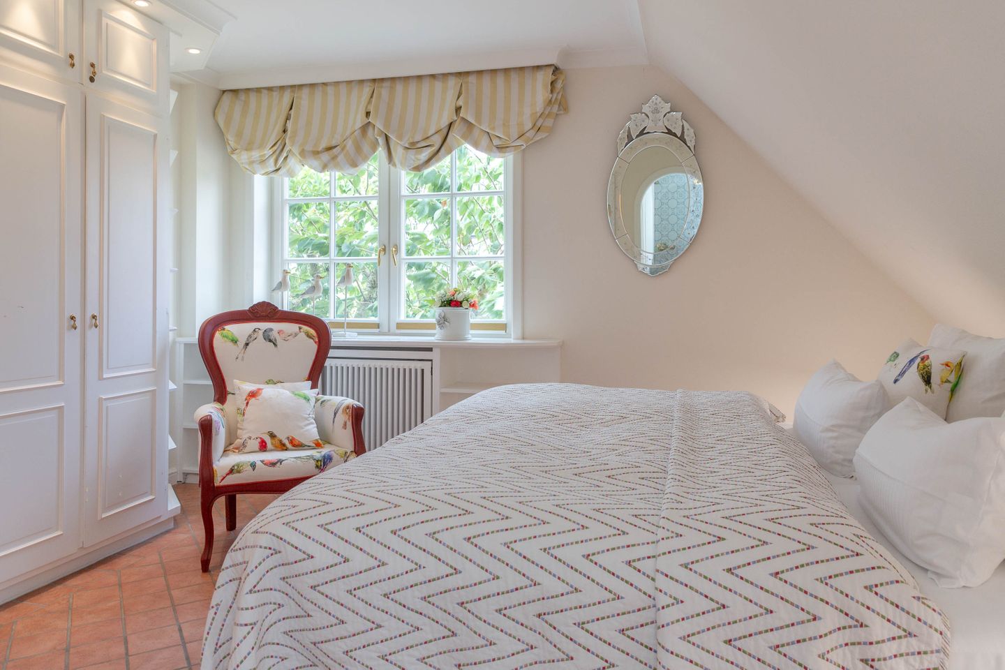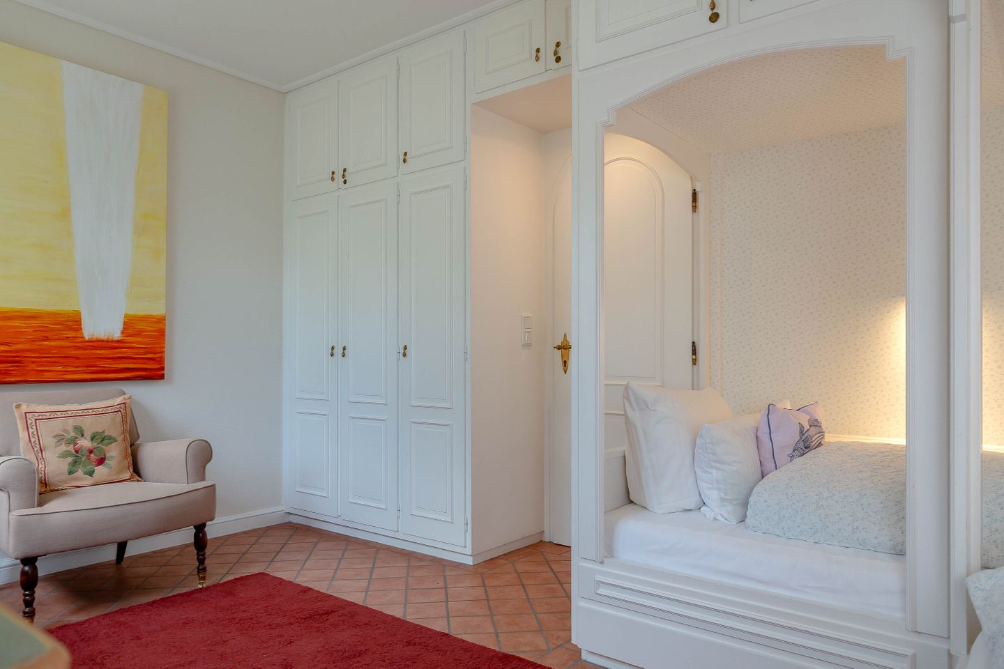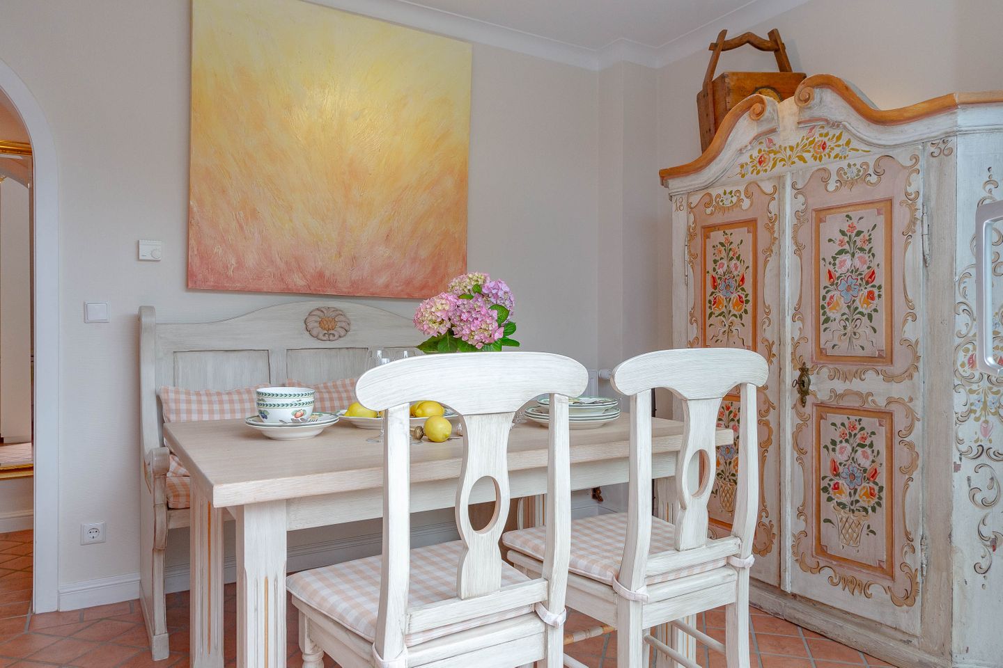 Unsere Ferienwohnung im Landhausstil befindet sich im Obergeschoss des Biberhüs mitten in Archsum. Eingerichtet mit Sylter Holzvertäfelungen und alten, friesischen Wandfliesen erstreckt sich diese Wohnung über zwei Ebenen. Der Essbereich mit altem Sylter Bauernschrank, die Bibliothek und zwei Schlafzimmer mit französischen Polster- und Sylter Alkovenbetten. Ein eigener Garten mit Strandkorb und bequemen Gartenmöbeln, ein Balkon am Essbereich mit Flechtmöbeln und dem schönen Blick auf andere Friesenhäuser.