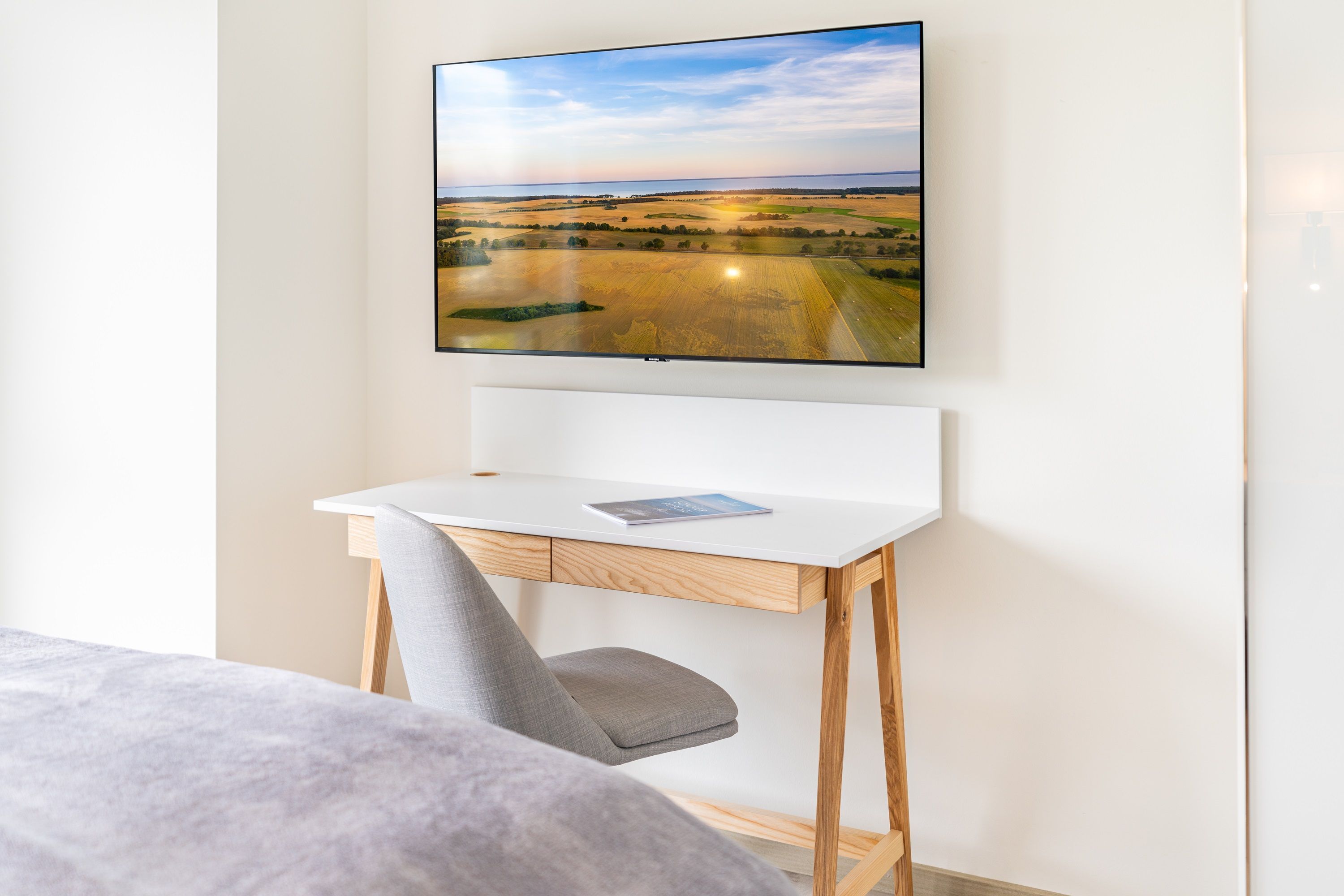 Im zweiten Schlafzimmer finden Sie ebenfalls ein komfortables Boxspringbett (180 x 200 cm), einen Kleiderschrank, einen Schreibtisch und einen Smart-TV vor.